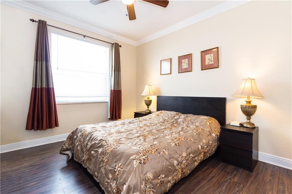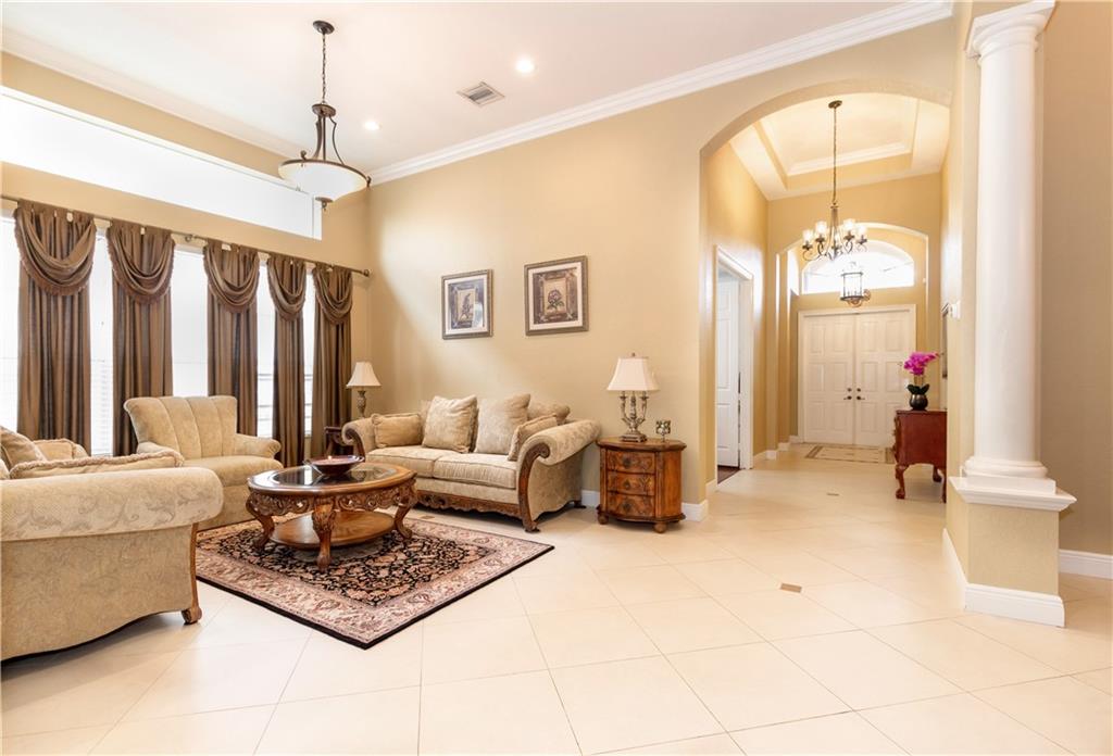 Gorgeous upgraded one story pool home. Large gourmet kitchen with real wood cabinets, granite countertops, double oven, wine cooler, breakfast area and snack bar. Volume ceiling, crown molding, tile flooring in main living areas, wood flooring in bedrooms. Master bedroom has two large walk-in closets w/closet organizers. Large master bath with two vanities, large shower and separate bathtub. Peaceful backyard with free form pool & sitting area. Newer A/C units w/nest thermostats & hot water heater, generator transfer switch recently installed. Accordion shutters, 3 car garage with garage organizer & shelving. Home is completely move in ready!