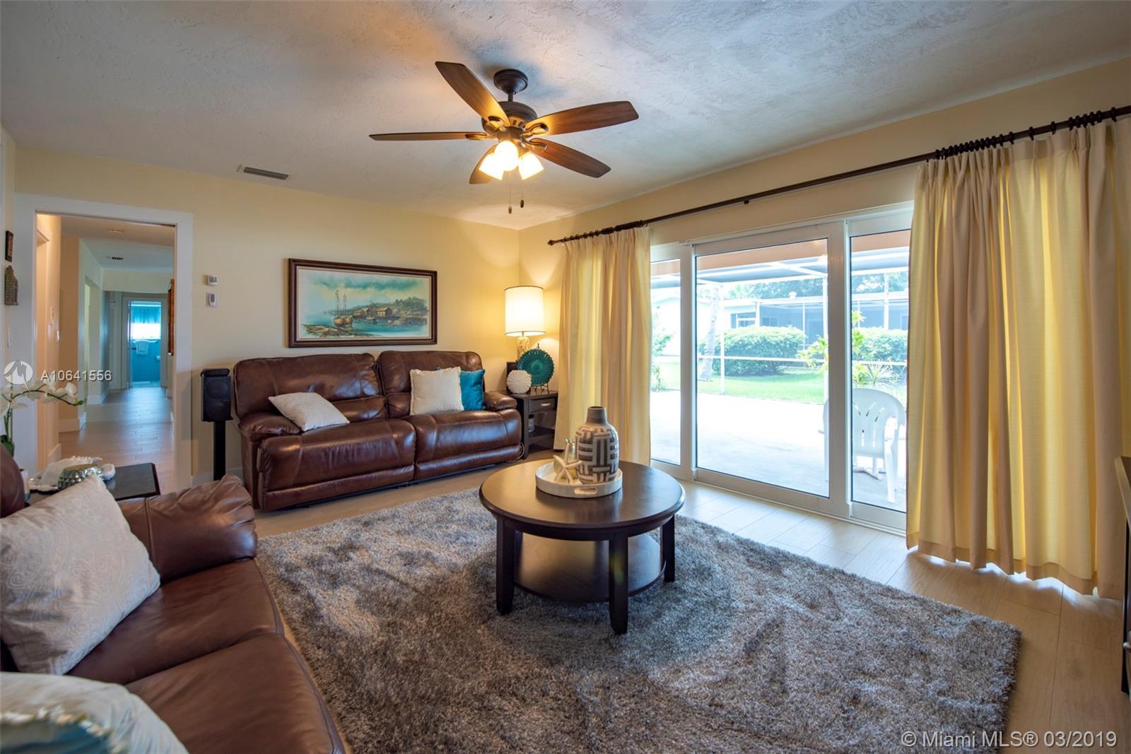 Charming 3/2 plus Den (can be a 4th BR). Brand new wood-look tile throughout. ALL Impact Windows, Impact Sliding Glass Doors & Impact Exterior Doors, including Impact Garage Door. Lifetime warranty on impact windows & doors. Pre-wired 8 camera Lorex camera security system. Installed Simplisafe Alarm System with sensors on exterior doors and windows. Trane AC 2014 with ultra violet lights. Lawn Irrigation with siphoning feeder system. Large screened Patio. Updated Kitchen with high hat dimming lights and white cabinets. Newer Remote Controlled fans in every bedroom, kitchen, and den. Updated Master Bathroom with tile throughout, double vanity and frameless shower door. Large 2 car garage. No mandatory HOA,