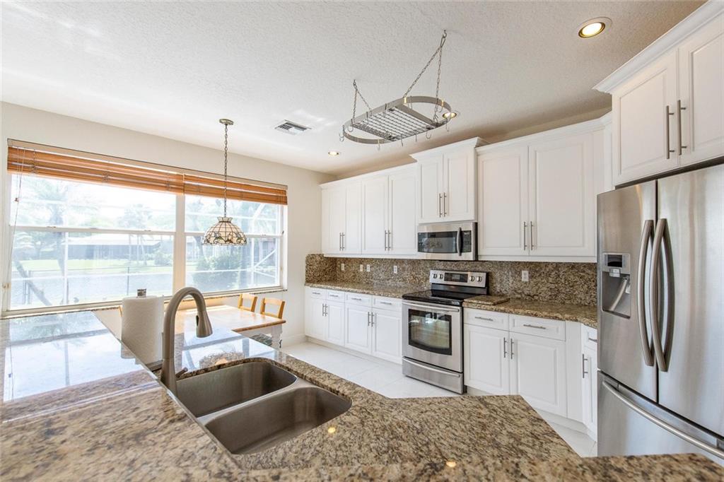 One of the prettiest water lots in North Coral Springs! Light & bright, this beautiful home is filled with upgrades, including: gorgeous white kitchen w/granite counters & "new" stainless steel appliances; completely renovated spa-like master bathroom w/expanded shower, new white cabinets, granite counters & designer tile; all new carpeting upstairs; freshly painted interior; new baseboards on 1st floor; accordion hurricane shutters; brand new landscaping; exterior painted (2017); pool resurfaced w/new bull nose coping & water edge tile; master bedroom custom closet and much more! Enjoy the breathtaking water views from your screened pool/patio w/two, large covered patio areas and fence-enclosed yard! This desirable model offers 1 large bedroom & full bathroom downstairs! Great schools!