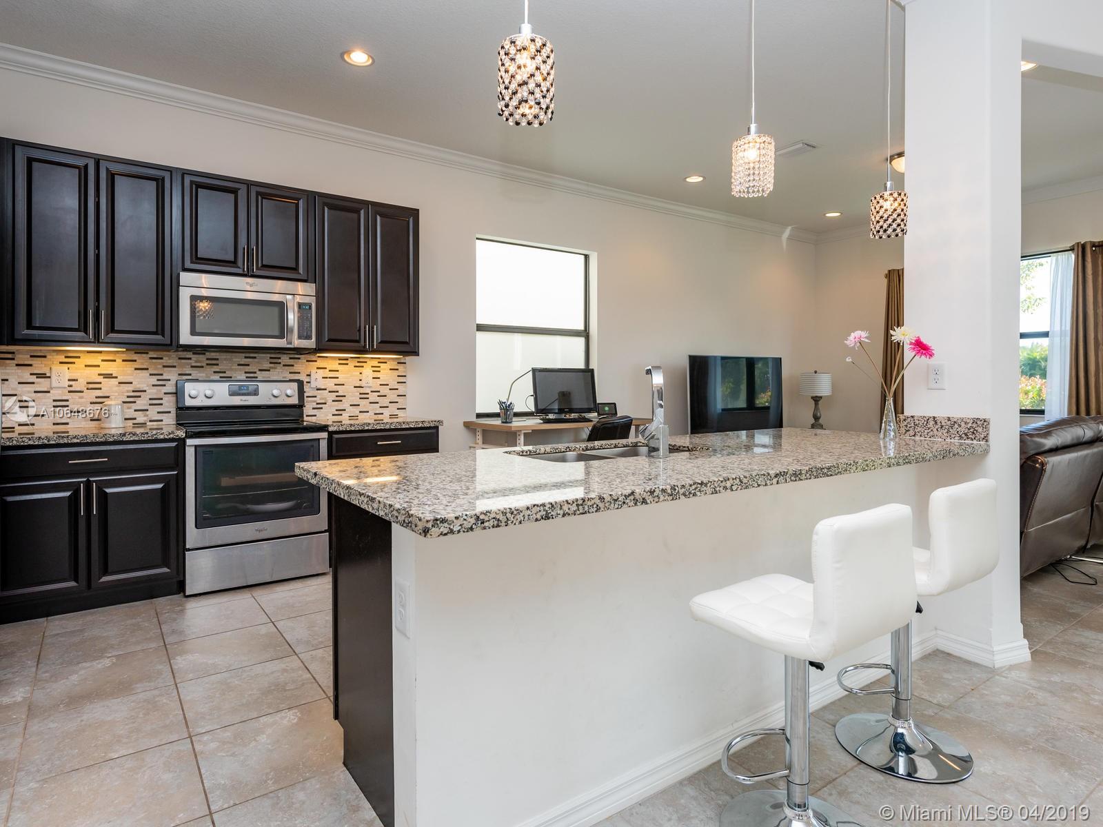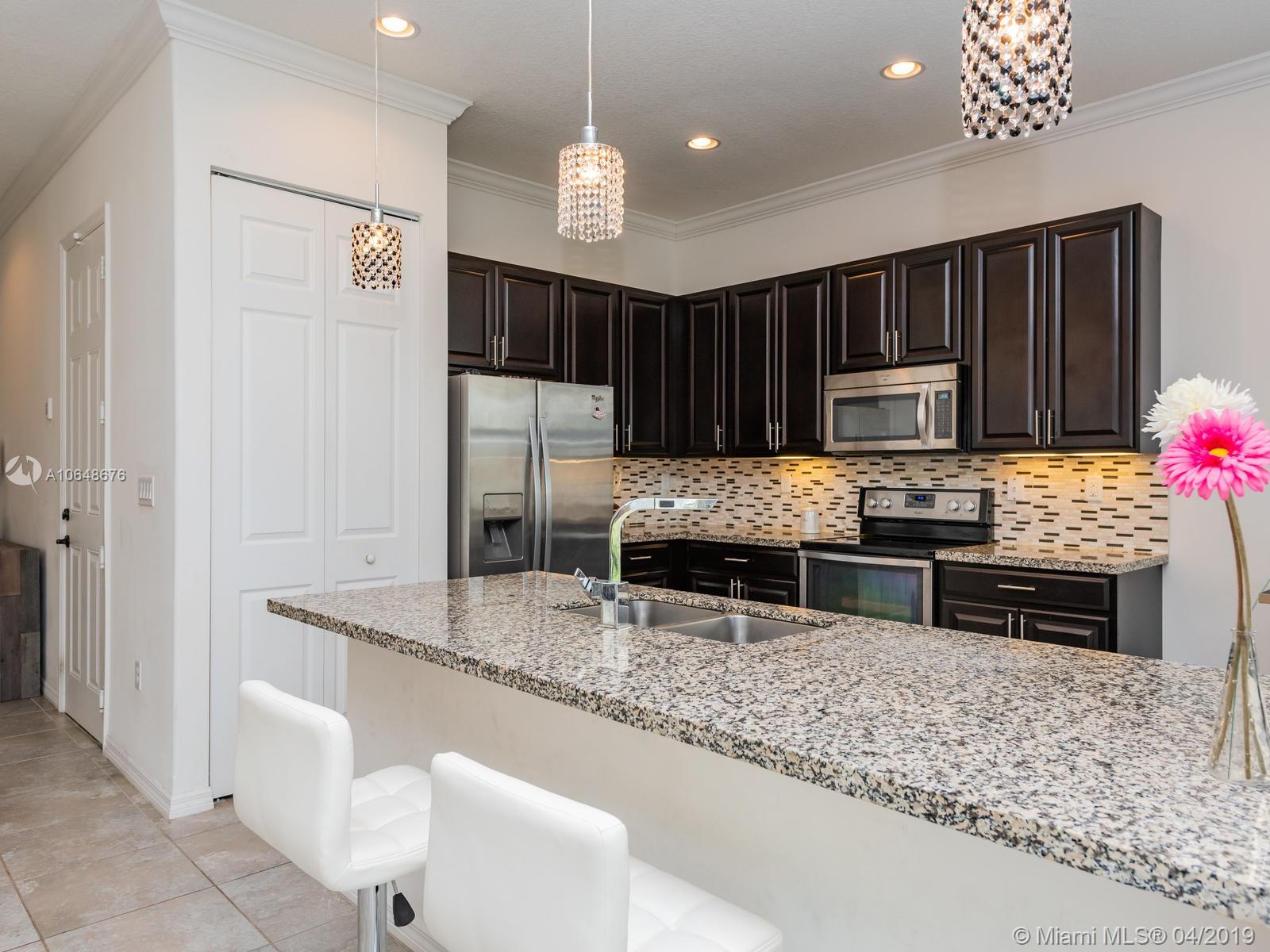 Charmin 2-story home, featuring 3 bedrooms, 2.5 bathrooms and 1 car garage. Tons of Upgrade including crown molding, solid wood floor, impact windows, granite counter top, wood cabinet, stainless steel appliances. Ready to move in. Right behind the playground. Gated community, clubhouse, pool. Minutes away from mall, schools, shopping centers and highways.