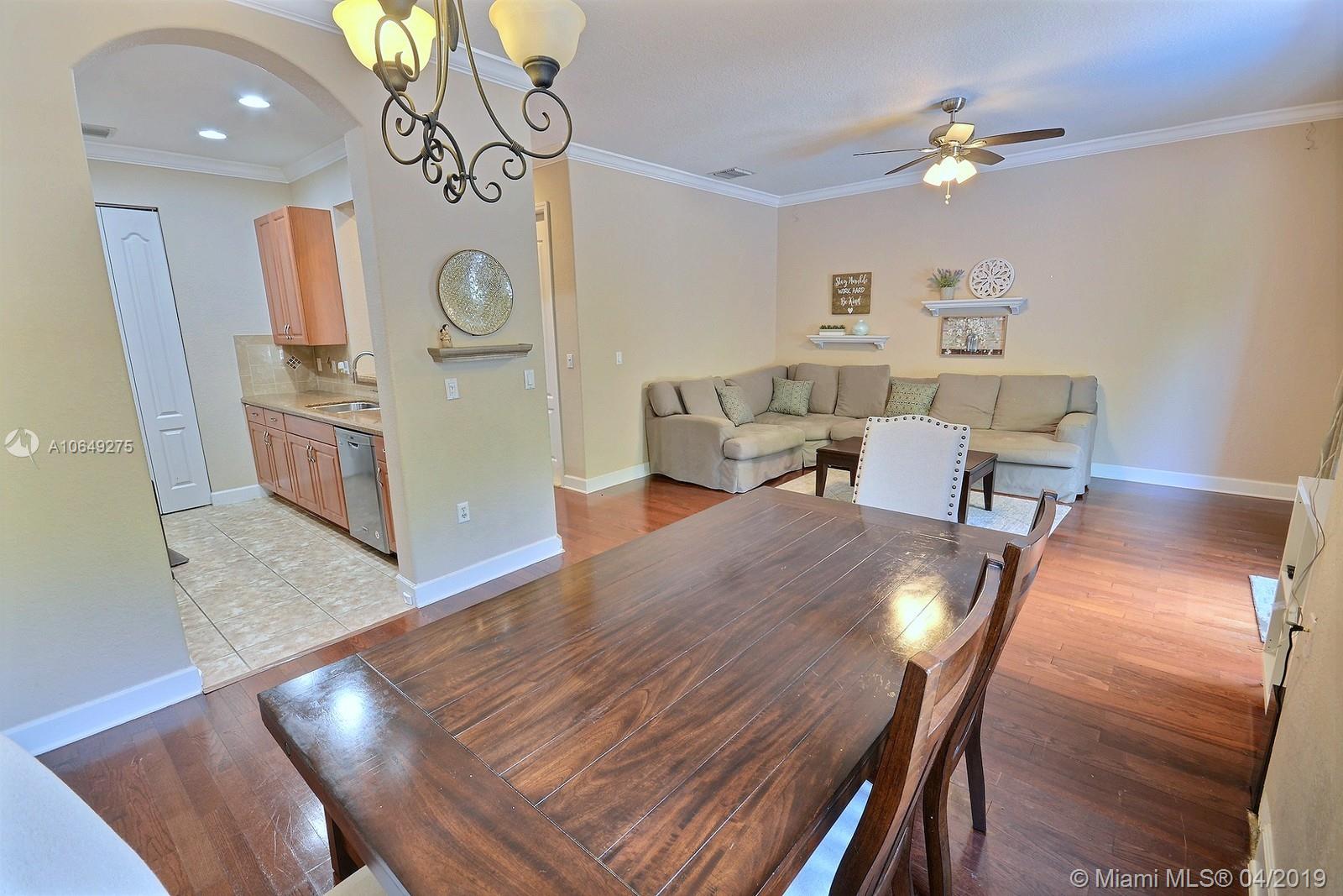 BEAUTIFUL 3 BED 2.5 BATH TOWNHOME W 1 CAR GARAGE FEATURES UPDATED KITCHEN W STAINLESS STEEL APPLIANCES, LIVING, FAMILY AND DINING ROOMS, GORGEOUS HARDWOOD FLOORS. CROWN MOLDING, HIGH CEILINGS AND GOOD STORAGE SPACE. ALL BEDROOMS & LAUNDRY ROOM ON SECOND LEVEL. MASTER SUITE IS SPACIOUS, MASTER BATH W SEPARATE TUB + SHOWER & DOUBLE SINKS. AWESOME PRIVATE, FENCED IN PATIO WITH LARGE 6 PERSON SPA (SO UNIQUE!). COMMUNITY HAS POOL, TOT PLAYGROUND & GUEST PARKING. CENTRALLY LOCATED W ACCESS TO HIGHWAYS & ABOUT 20 MINS FROM FT LAUDERDALE AIRPORT. SCHOOLS: SILVER RIDGE ELEMENTARY, INDIAN RIDDLE MIDDLE & WESTERN HIGH.