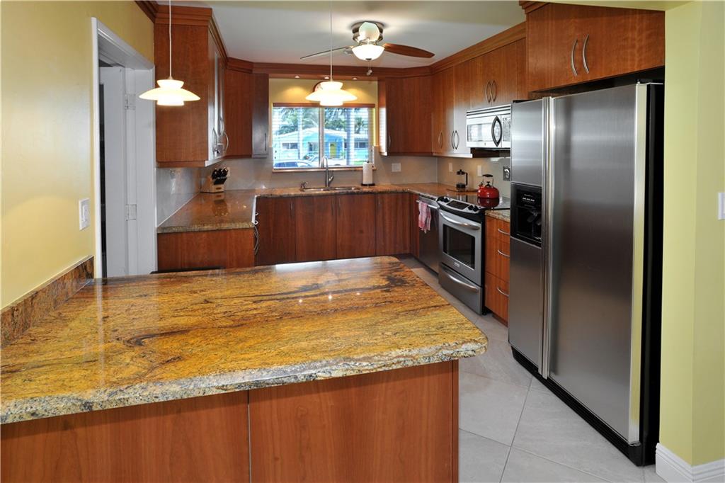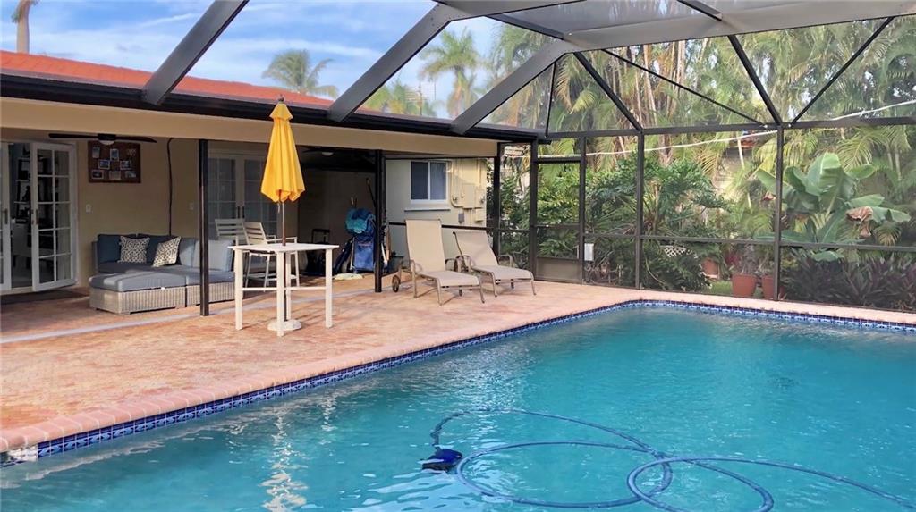 Tastefully renovated pool home just a short walk to Hollywood Beach and the Hollywood Marina. Features large format tile flooring in the living areas and new wood-look tile in the bedrooms. The kitchen has beautiful granite counter tops and stainless steel appliances. All of the interior doors are new. And there's space for a small office. A covered patio and screened-in pool area just off the main living room. Open the French doors to the outside and you'll add 1100 square feet to your living/entertaining space. All of the windows and doors are protected with hurricane rated shutters. You'll also find an extra long driveway and a one car garage in back off the alley. This is South Florida living at its finest.