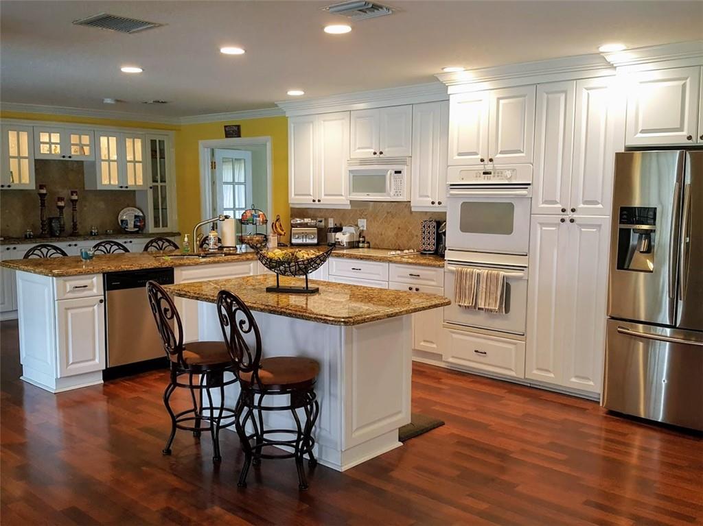 Spacious pool home with so many special features and every room is large! 4 bedrooms and 3.5 baths. The truly gourmet kitchen is huge and spectacular. Granite counter tops and remarkable finishes. Double wall oven, center island and snack bar. The adjoining family room is perfect for entertaining or making memories. Formal living room. The master bedroom has a sitting room, perfect for a nursery or office. There is also a second master! Bedrooms 3 & 4 are a nice size. Upgraded, impressive bathrooms. Beautiful flooring throughout. Screened patio for relaxing out back. Over sized pool with decks completes the Florida lifestyle. Interior laundry room with a half bath. Side load garage. New AC in 2018, new carpet and laminate flooring in 2017, and tankless water heater in 2015. So much to love