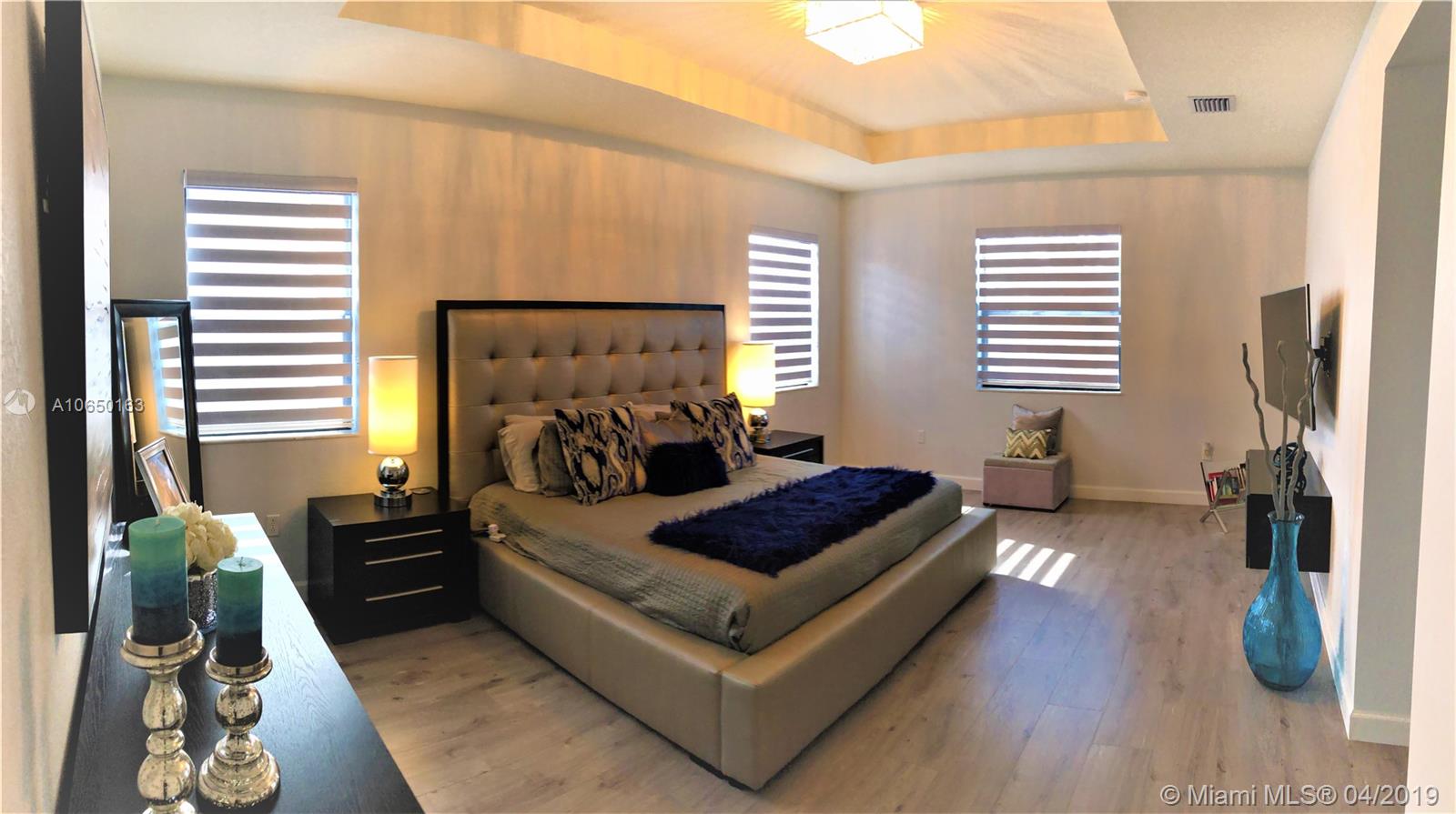 This Exquisite New Home modified from its original Builder has been decorated and remodeled by an Interior designer to capture the beauty and comfort-ability that any buyer hopes for in a home. Its open layout carries from the receiving area to the formal living into dining extending into the family room is an open gorgeous kitchen with Quartz counter top floating cabinets and top of line appliances. Enjoy a huge Master Suite and Bathroom. Upgrades include Satin Zebra Blinds, smart home media system, interior and exterior lightening, Tank-less water heater, extended paved driveway and patio, installed rain gutters and beautiful landscaping. Don't miss this opportunity in getting all the upgrades upfront already and owning this Gorgeous Home in this beautiful community.