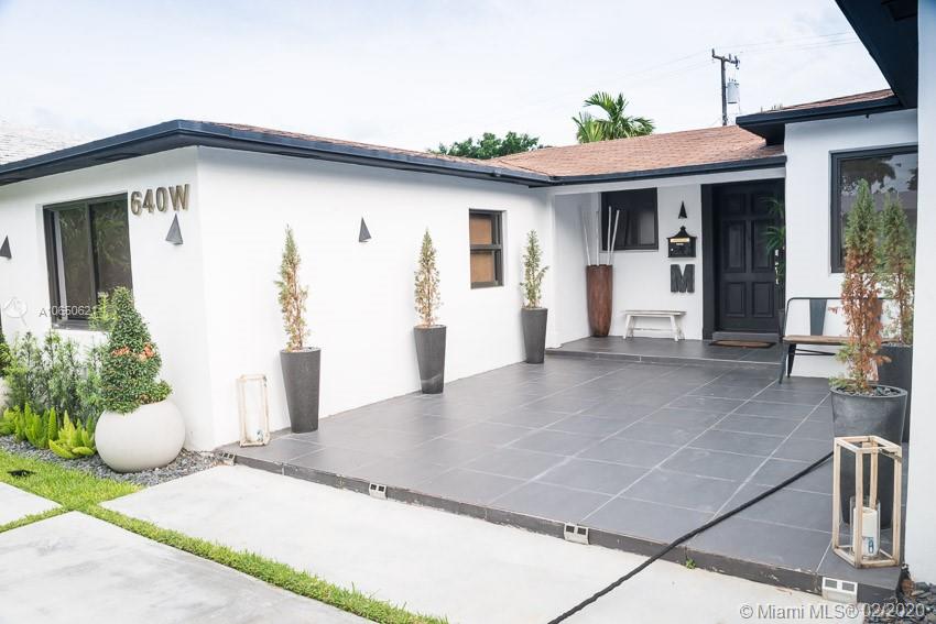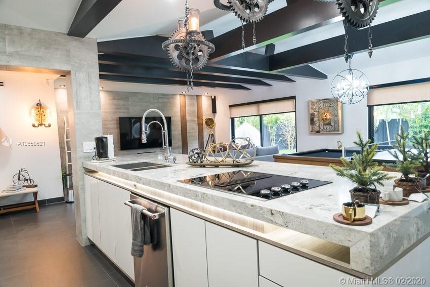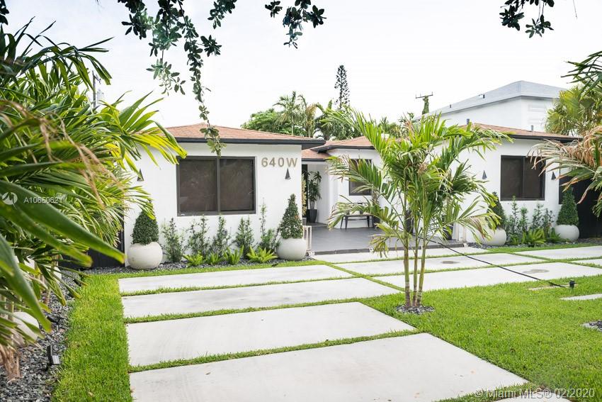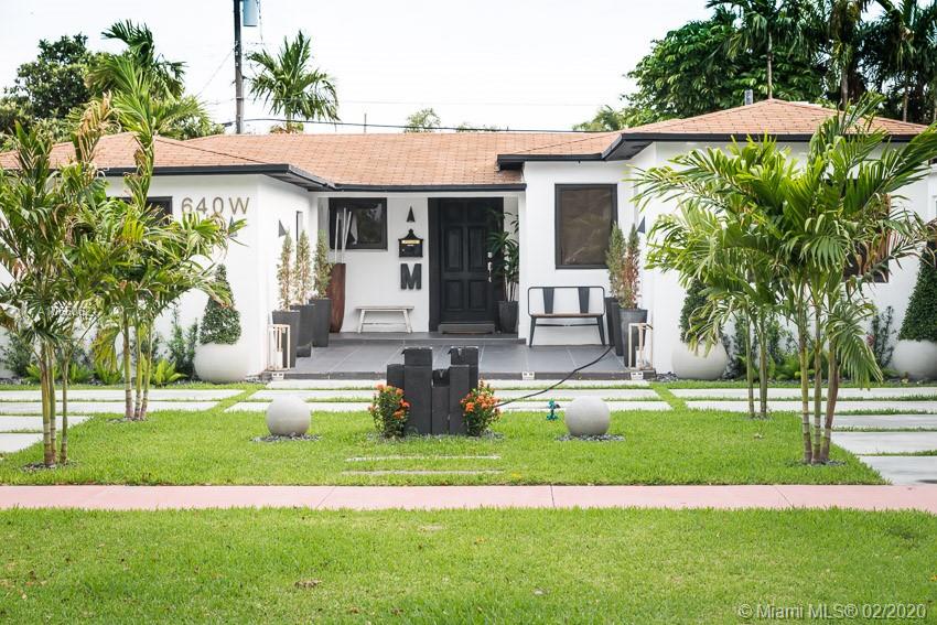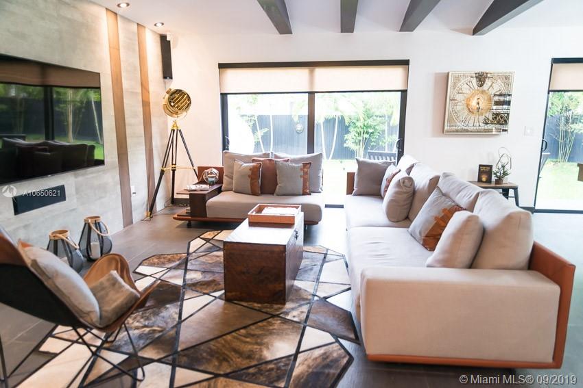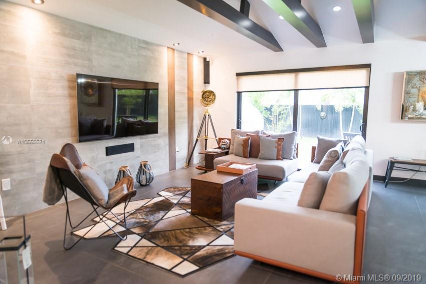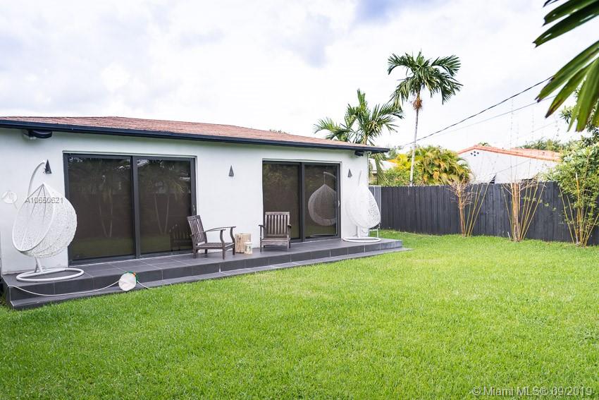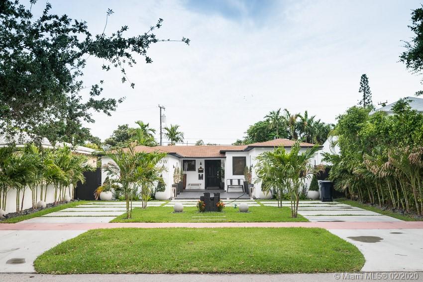 This fabulous style home is recently remodeled, high impact windows throughout, offering spacious living and dining areas, high ceilings, brand new AC, fully remodeled bathrooms with glass showers and a bathtub and built in TV on master bath, custom made open kitchen with high-end appliances including a chef's electric range and a separate laundry room. Speakers built in. Fenced-in backyard. Walking distance to La Gorce Country Club. The features on chandeliers used in this new home are incredible, just one of a kind. Perfectly situated with plenty of parking on a brand new modern concrete driveway. This property combines all the best elements to make this house the ideal home.