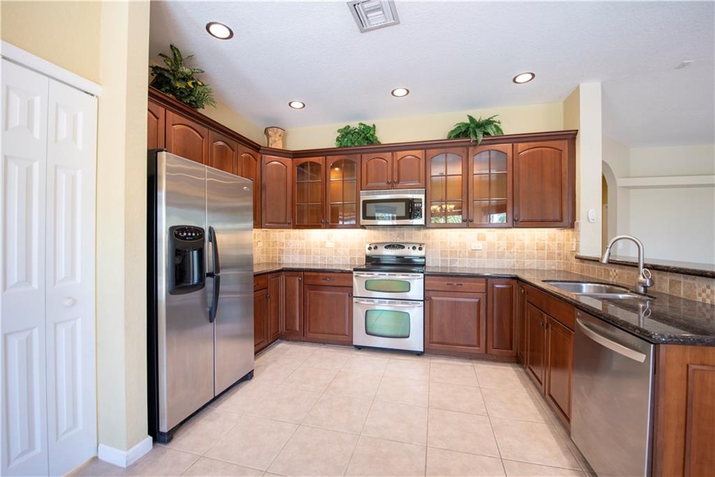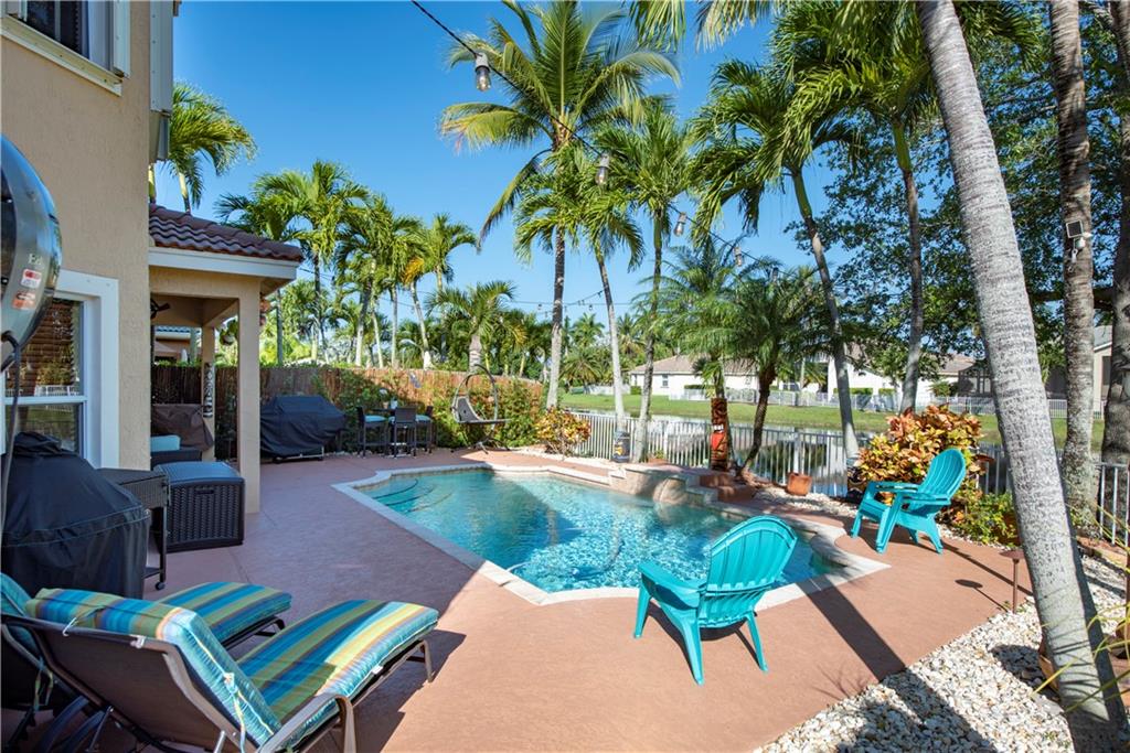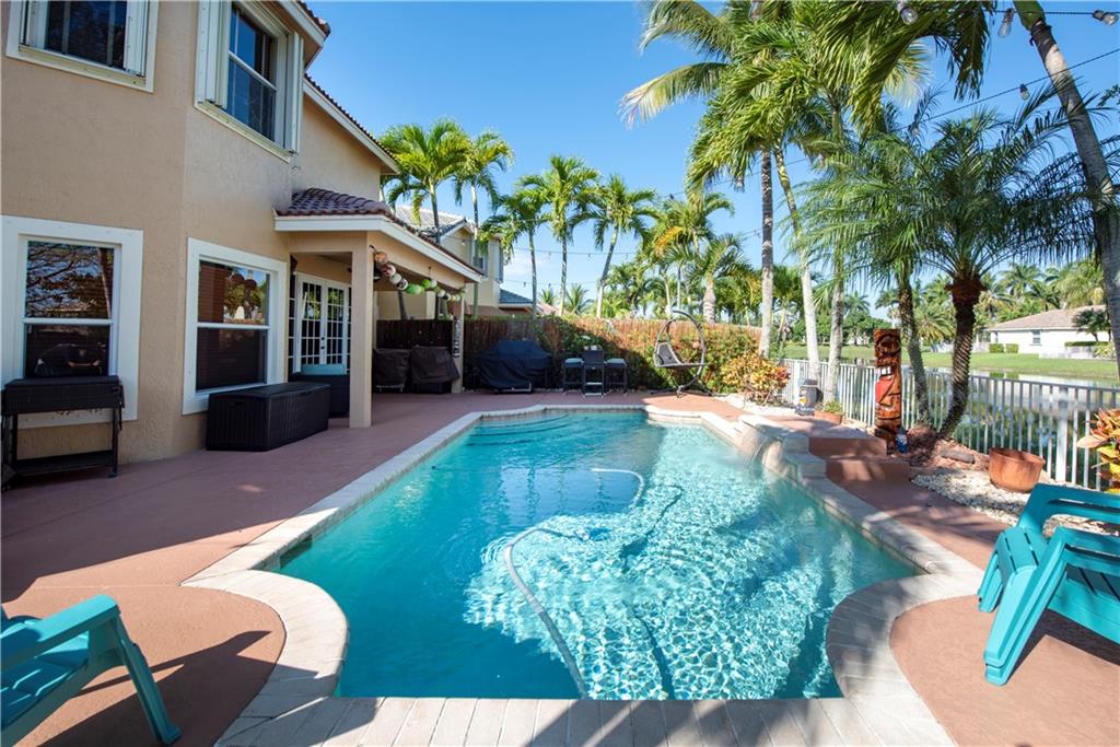 Beautiful WATERFRONT location.Meticulous,spacious,freshly painted 4 BR 3 Full Bath pool home has lake & pool views from all living areas.VERY PRIVATE fenced pool area overlooking lake.Grill area,covered patio,new landscaping perfect for entertaining.Large Master bedroom with sitting area plus 2 walk-in closets.1 bedroom & FULL bathroom located downstairs-perfect for a guest /teenager/office.Volume ceilings.Kitchen-SS appliances/granite counter tops/cabinetry& breakfast bar.Loft area on 2nd floor perfect for home office/lounge area!LED lighting. Laundry room inside.Lots of closets/storage.Accordion/panel hurricane shutters.Brick paver driveway.Close to all highways,shopping,dining."A" rated schools.HOA includes lawn/sprinkler/gate .LOW maintenance property!VACANT/OWNER MOTIVATED/LOCKBOX!