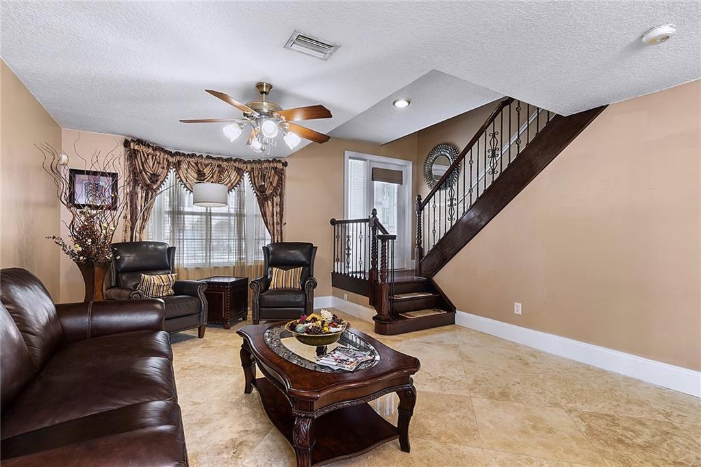 Amazing opportunity to purchase to purchase this highly upgraded home that has been impeccably maintained by the original owner. This home has custom features including marble floors on 1st floor, wood floors upstairs,wood banister w wrought iron rails, custom wood kitchen w stone countertops and stainless steel appliances, remodeled bathrooms with master bath fit for queen,tropical backyard w summer kitchen, tiki hut w bar, built in gazebo *HOT TUB NOT INCLUDED* fully fenced. This home is priced to fly and will sell very fast.*maintenance fee includes front lawn, sprinkler,exterior paint, irrigation and community pool