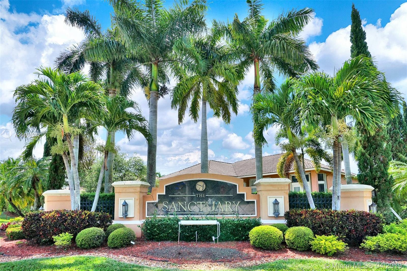 Massive Estate sets behind the Gates of The Sanctuary, Stirling model largest single story completely remodeled with incredible details including 32x32 white polished porcelain floors in main living areas, wooden laminated in bedrooms, crown molding, high ceilings, high impact windows, amazing kitchen features new material Quartzite counter tops, gourmet island, upgraded wooden cabinets, stainless steel appliances, French doors, large living and family room areas, immaculate master bedroom & bathroom, all upgraded bathrooms. Outside entertainment at large in this oversized 19000 sq-ft lot with green areas, huge circular driveway, beautiful covered patio, pool, water fountain feature and water views, front East exposure.