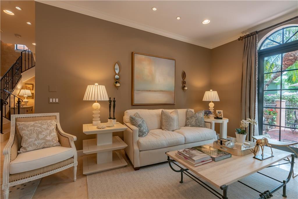 Sophistication abounds in this luxury townhome nestled within blocks of famed Las Olas Blvd. Magnificent curb appeal with enchanting patio entrance thru a private gated, meticulously manicured garden with heated saltwater pool. Volume ceilings, high-end finishes, gleaming marble flooring & impact windows are some highlights of this timeless design. Beautifully refinished open concept kitchen with gas stove. Refined living spaces with 3 en-suite bedrooms plus powder room and spacious media/den. Walkout patios on every level. Private elevator, 2 car garage and more complete the appeal for a discerning Buyer.