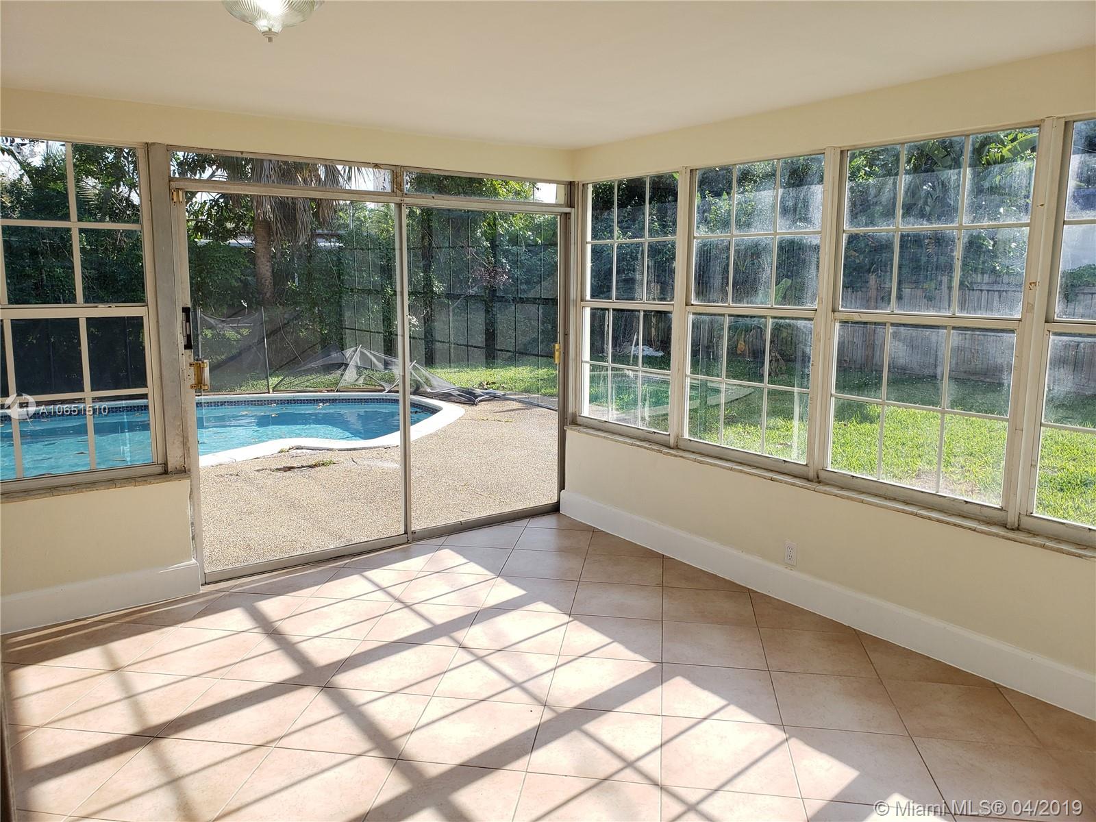BEAUTIFUL 4/2 HOUSE WITH A POOL LOCATED IN NORTH MIAMI BEACH. This house is a must see! It even has a gorgeous Florida Room with a lot of natural lighting ! Kitchen has been completely remodeled, brand new base boards throughout the house. The house has also been freshly painted. Please use show assist for access.