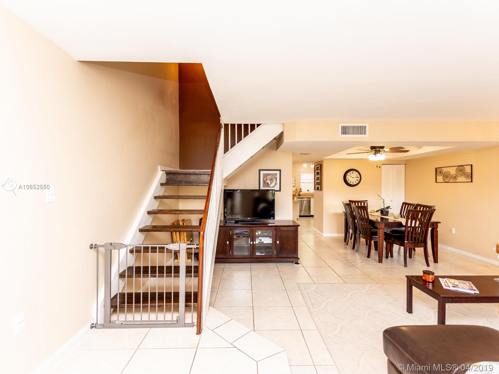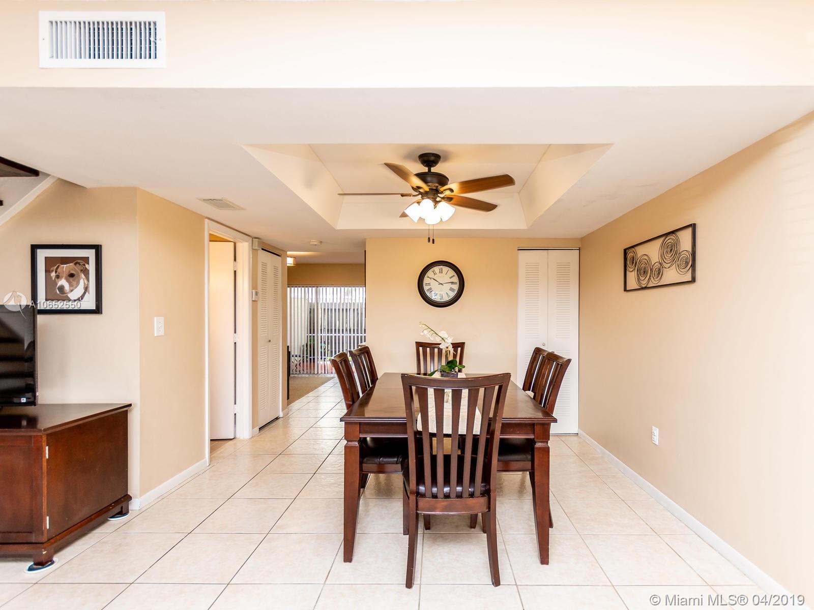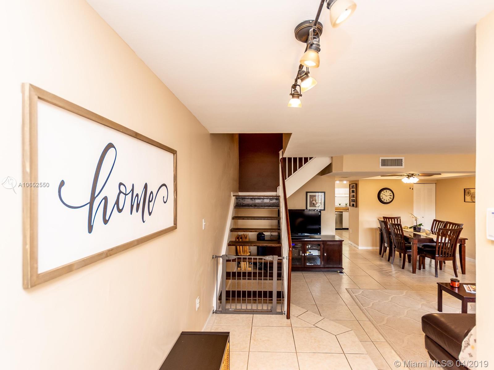 Beautiful and well maintained large Evonne model featuring 3 bedrooms and 2 1/2 baths with a screened in patio. The owners have updated approximately 75% of this home and it shows! Beautiful newer porcelain wood look flooring on 2nd floor and stairs, remodeled bathrooms, Stainless steel range hood, central a/c 2 years old, new electrical panel/circuit breakers, newer washer/dryer and water heater and more. All tile on first floor. Freshly painted interior and exterior walkways. Screened in patio great for bar-be-ques! An overabundance of amenities which include: manned gated entrance, 2 pools, tot lot, tennis, indoor basketball/racquet ball plus sauna.