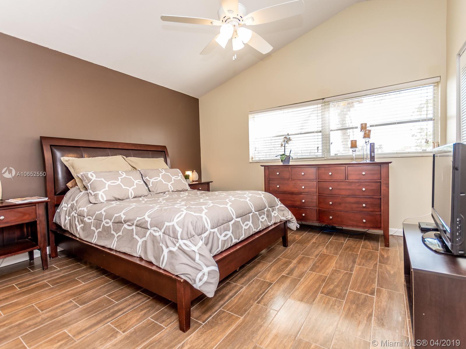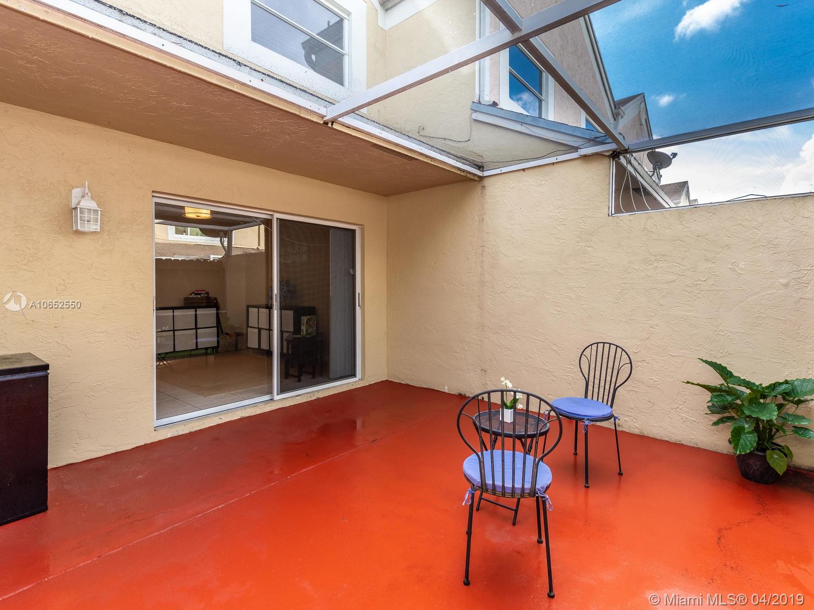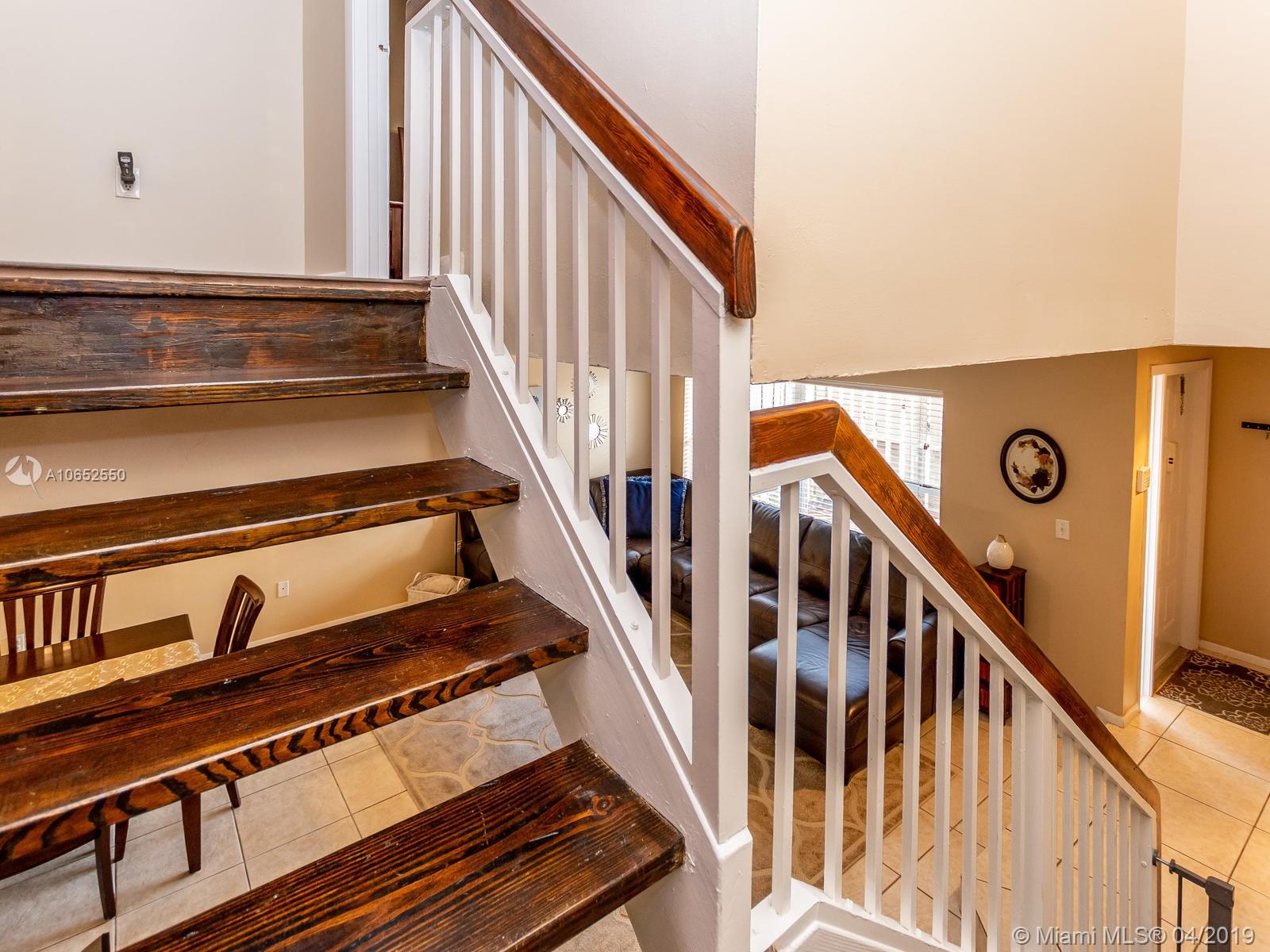Beautiful and well maintained large Evonne model featuring 3 bedrooms and 2 1/2 baths with a screened in patio. The owners have updated approximately 75% of this home and it shows! Beautiful newer porcelain wood look flooring on 2nd floor and stairs, remodeled bathrooms, Stainless steel range hood, central a/c 2 years old, new electrical panel/circuit breakers, newer washer/dryer and water heater and more. All tile on first floor. Freshly painted interior and exterior walkways. Screened in patio great for bar-be-ques! An overabundance of amenities which include: manned gated entrance, 2 pools, tot lot, tennis, indoor basketball/racquet ball plus sauna.
