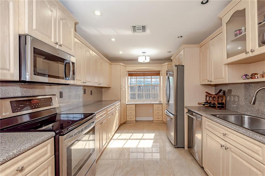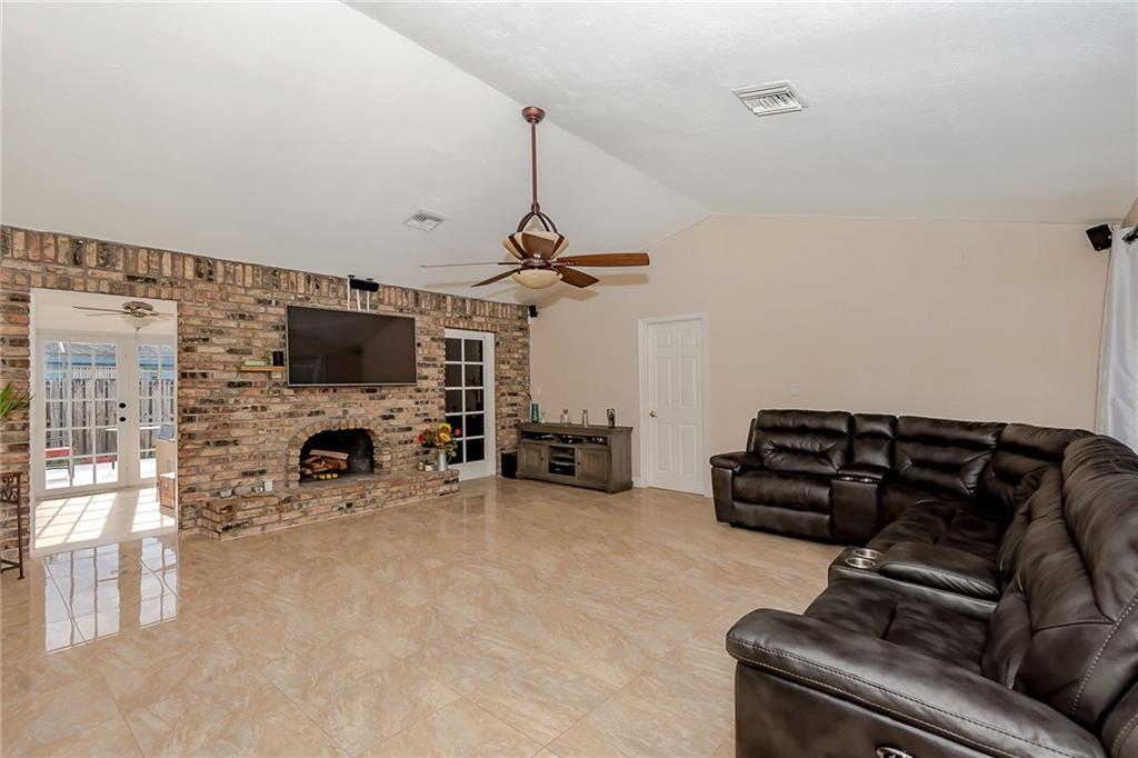 Beautiful split floor plan 3/2 + office home with updates throughout! Featuring a working fireplace with a stone wall surrounding, porcelain floors throughout with wood in bedrooms. Remodeled bathrooms, Master bath with “his and hers” vanities & jacuzzi tub. HUGE kitchen with ample cabinet space, stainless steel appliances. Great back yard space for entertainment! Easy to show!