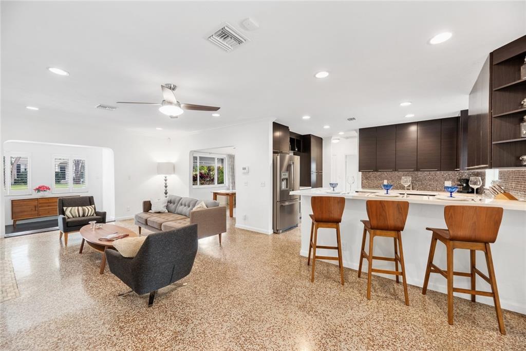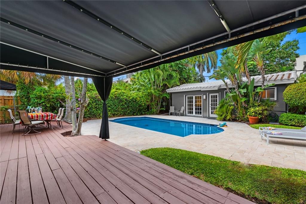 Your Victoria Park home awaits! Come experience this wonderfully updated bright home w/ guest cottage & pool. Newer stone paver drive for plenty of parking options. The main residence offers gorgeous open plan w/ restored Terazzo flooring, functioning fireplace, new bamboo in master & impact windows & doors. Master suite enjoys a modern bath. The kitchen is sharp with SS appliances, gas range, deep sink, wine fridge & pantry. Through impact french doors you find a fresh wood deck w/large heated pool surrounded by Travertine tile offering lots of space to entertain & relax. Separate guest cottage w/kitchenette, bedroom & living space. Easy walk to all the newest hotels, bars & bistros in Flagler & Las Olas. Enjoy a pleasant bike ride to the beach or quick trip to the train, airport & ports.