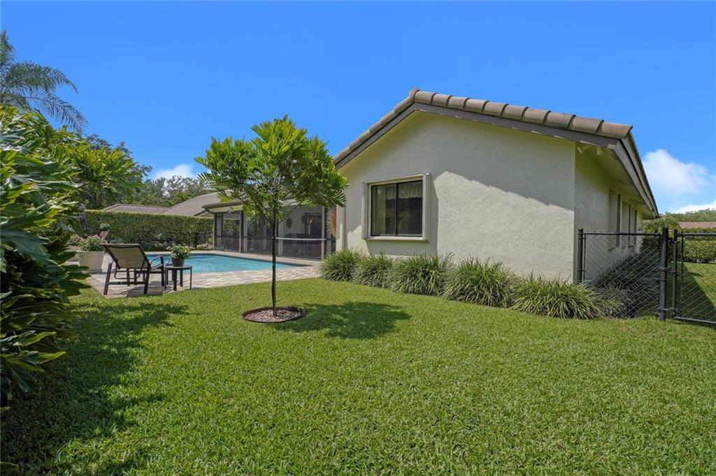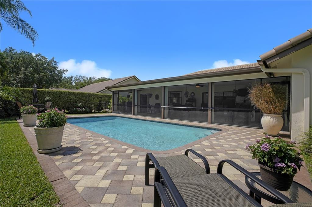 Lush, private tropical landscape invite you to enjoy our Fl lifestyle! Look at all the recent updates: Gourmet Kitchen w/ water filtration '17, Bathrooms '18, A/C '18, Electrical Panel inside and out '19, Ext LED Lighting, Paint (inside & out '19), upgraded Pavers, & more. Storm Safe home: Accordion Shutters, Reinforced Garage Door, Whole House Generator Outlet, 2007 Roof & new Screens. Through the indoor Utility Room (newer Washer/Dryer) is the 2 Car Garage, with work area, storage shelves & finished Epoxy Floor. Screened Patio adds nearly 400 feet of FL living space (protected by Accordions) w/ New LED TV overlooking Fenced tropical yard & Diamond Brite Pool. Ahhhh! Low HOA = $53/mo. Even comes with a Home warranty Plan for added peace of mind. See attachment for details.