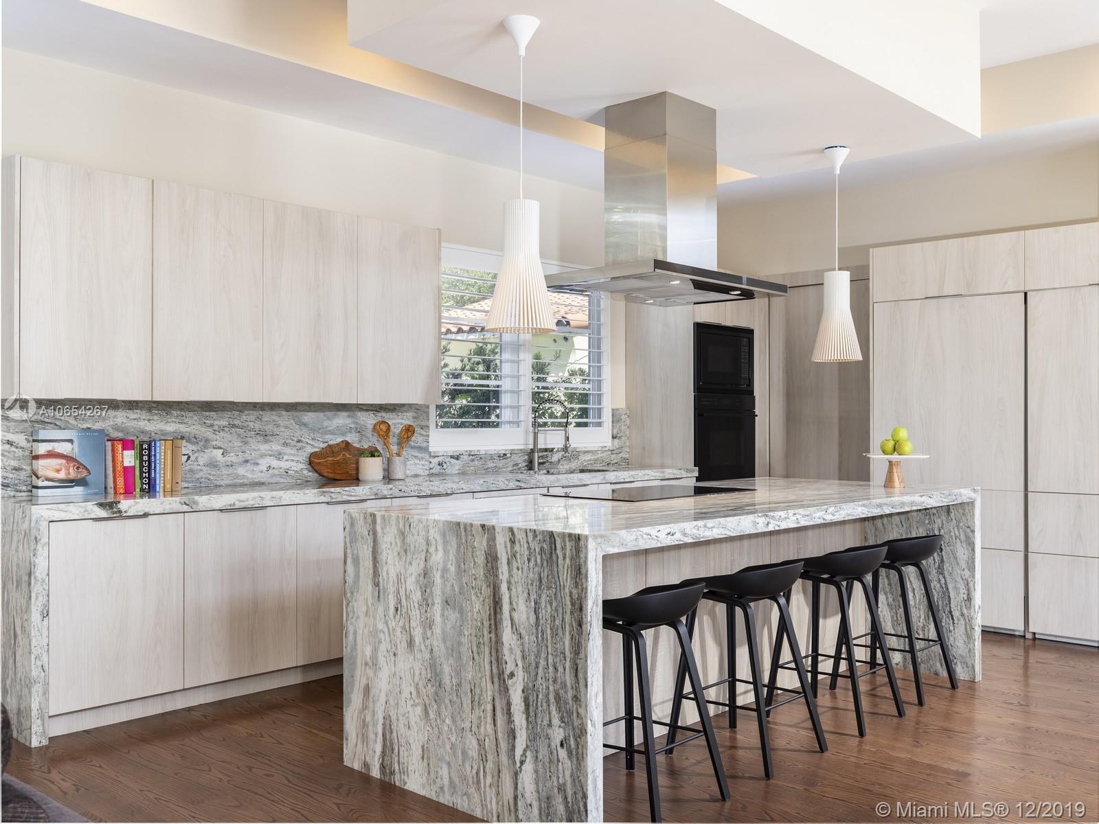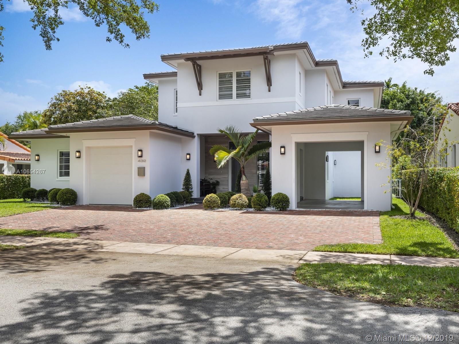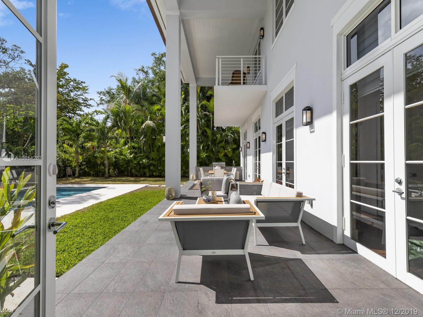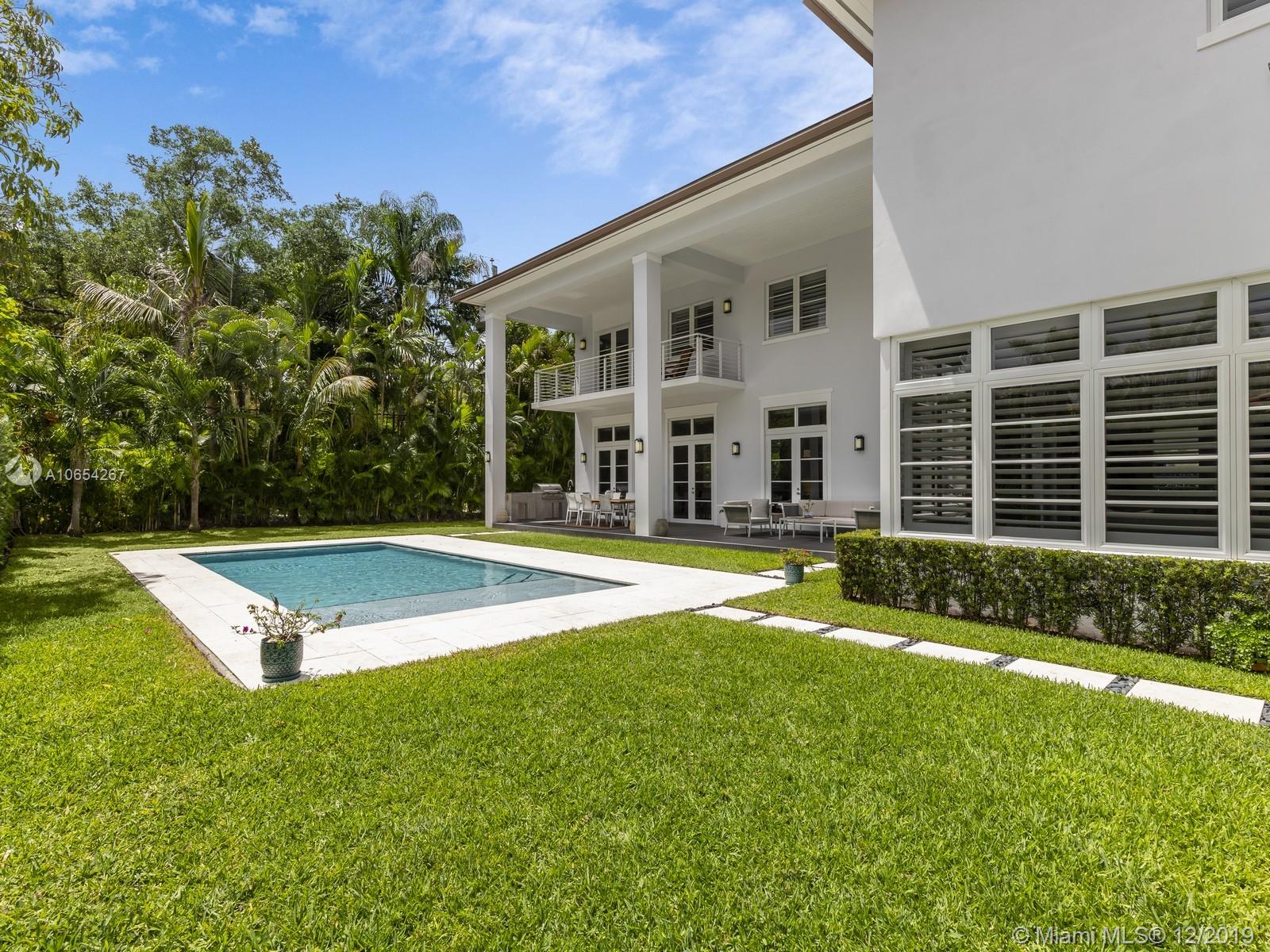 The finest offering for newer construction walking distance to the most outstanding that Coral Gables has to offer! Dramatic open living spaces from the moment you enter this modern home where natural light abounds. An open kitchen with a large island created for entertaining. The home is centered around a magnificent double height ceiling terrace with an outdoor kitchen and a saline pool for outdoor gatherings. The master suite features an outdoor covered balcony along with a perfectly designed walk-in closet and a spa inspired master bath outfitted with only the best features. This home embodies the contemporary amenities every family desires along with the stylish lifestyle that comes with its location!