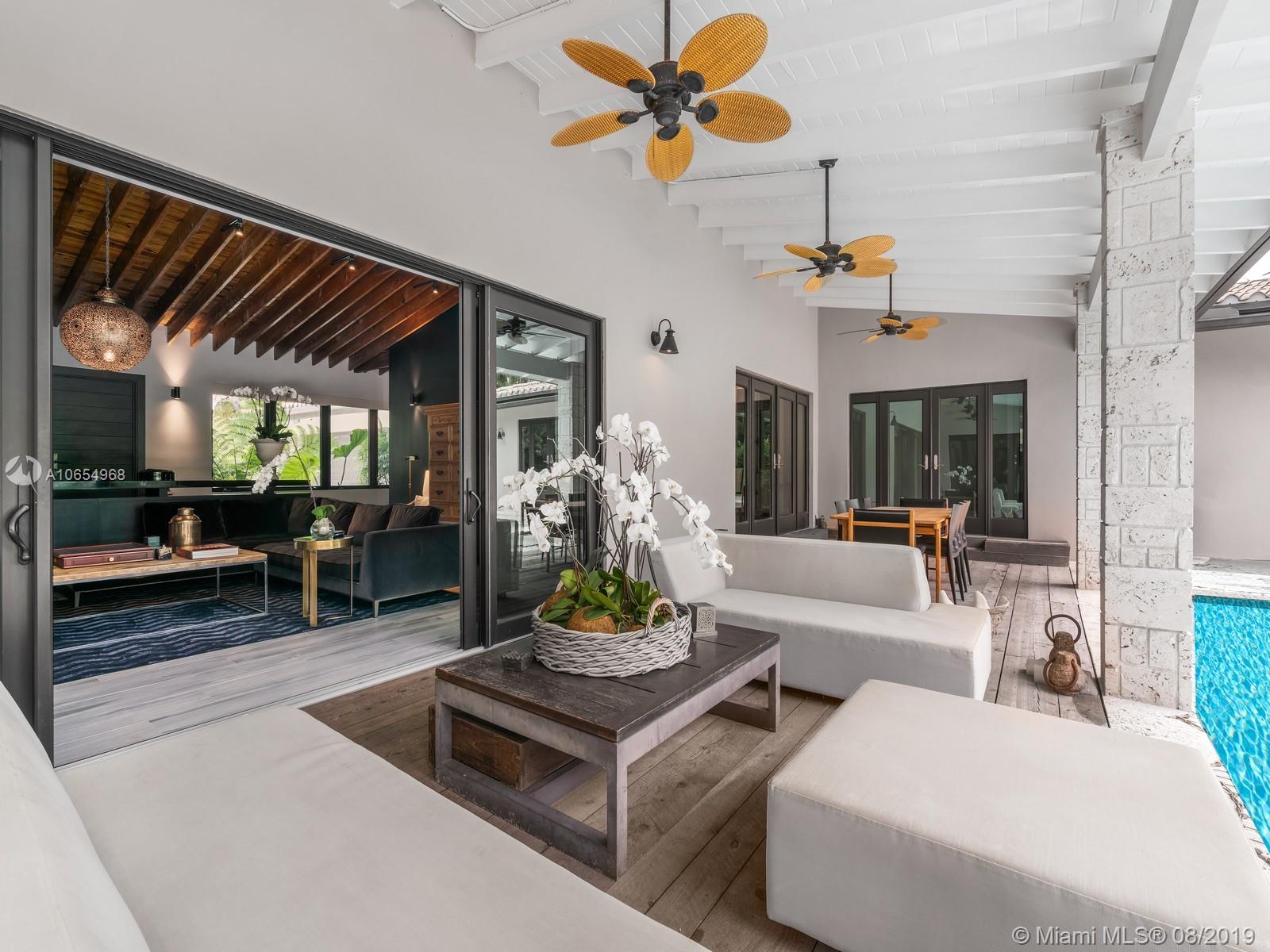 Move right in! Turn-key, completely updated one story home in South Gables/ Coconut Grove border with exquisite designer finishes. Ideal split floorplan featuring light filled open spaces, spectacular eat in kitchen with top of the line appliances and beautifully appointed bathrooms. Sliding doors open to amazing outdoor area with huge covered terrace and sun filled pool. Master suite features oversized custom closets and luxurious bath. Spacious laundry area and bonus room with full bath. Walking distance to kids park. Truly a must see!