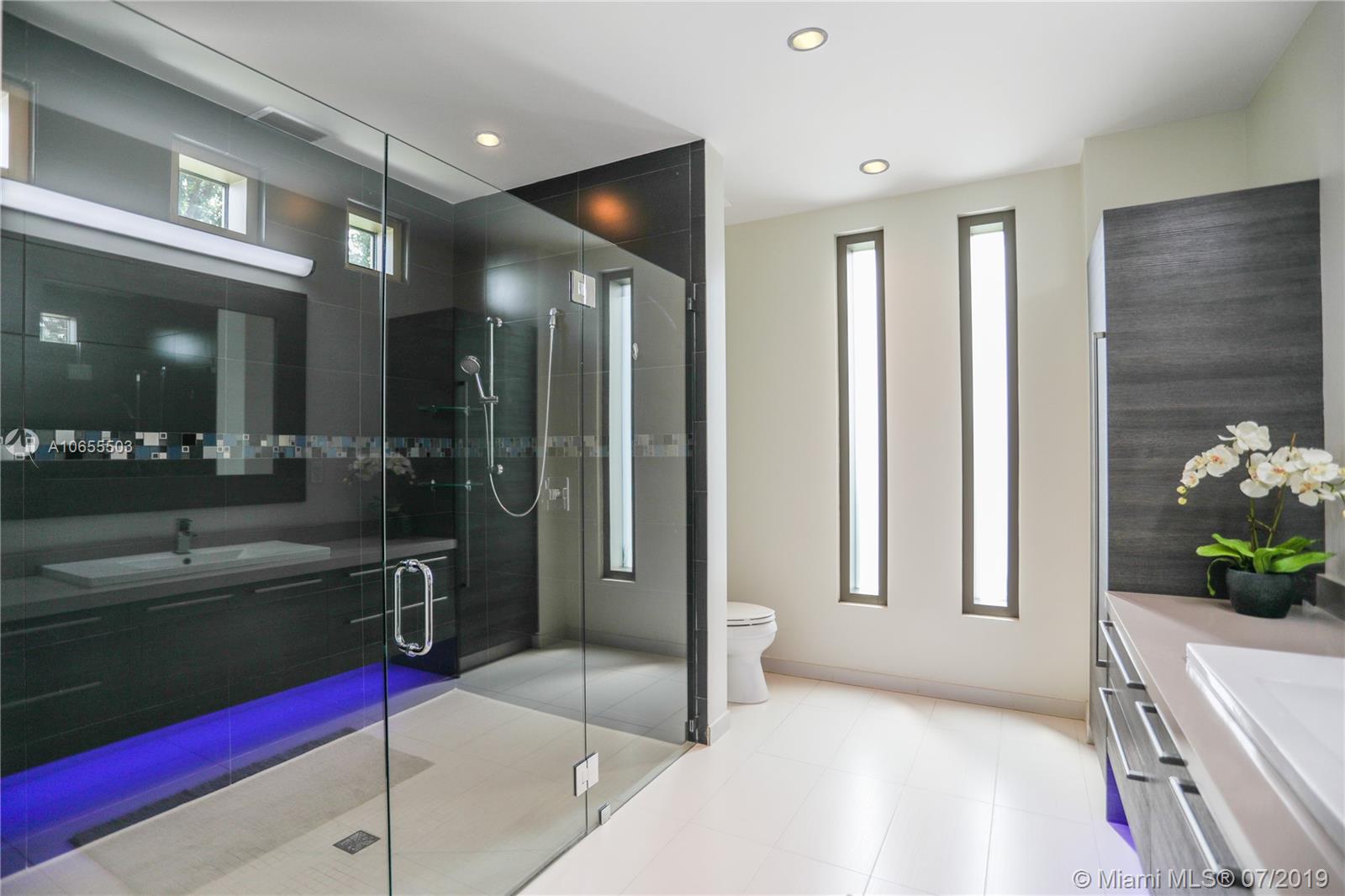 Chic ultra-modern design, with personal architectural touches and custom designer finishes. This home was crafted with precision for the future homeowner. 4 bedroom, 4 bathroom, 2 car garage with attached guest house. Open floor plan with 36 inch porcelain glass floor, 9/16 impact windows and A/C system with linear diffuser. Gourmet kitchen featuring quartz countertops, Thermador appliances & "Salt" cabinetry. Posh master suite with a private outdoor spa jacuzzi retreat along with a sleek master bath with undermount blue lighting. Formal dining room with glass atrium scenery. Impressive in-law suite features private entrance & kitchenette. Lavish outdoor veranda showcasing the pool, peaceful lake views. This home is a must see! Unique and wonderfully made, pinnacle of South Florida Living