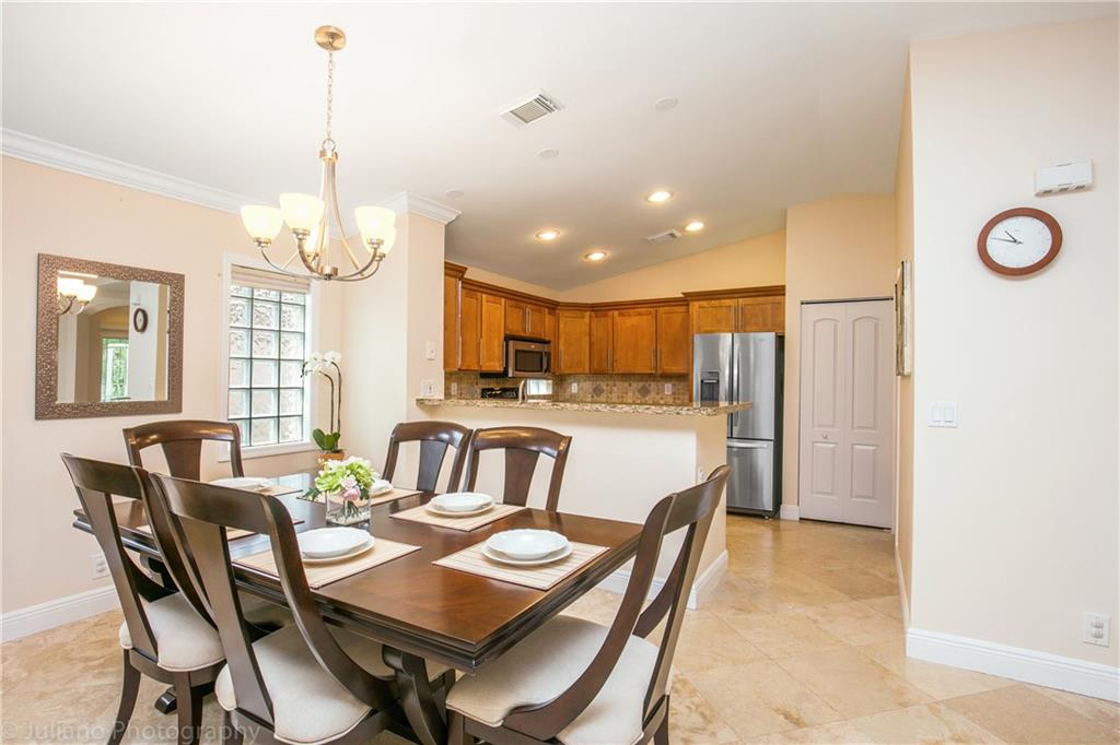 THIS ONE IS SPECIAL! Looking for some yard space plus a completely updated move in ready home? Well stop the car as this is the home you have been searching for! For starters this home is located on an oversized fenced & completely hedged lot. Plenty of room for the family to play! As you step inside this ultra clean home you will notice the upgraded Travertine floors throughout the house. It doesn't stop there. As you enter the master suite you will be greeted with a top to bottom remodeled master bathroom. Other features include an extended covered & screened in patio, updated kitchen w/ wood Shaker style cabinetry / granite top / tumbled stone backsplash, accordion shutters, water heater 2016, newer A/C, custom closet cabinetry, & crown molding. Hurry this one won't last long!