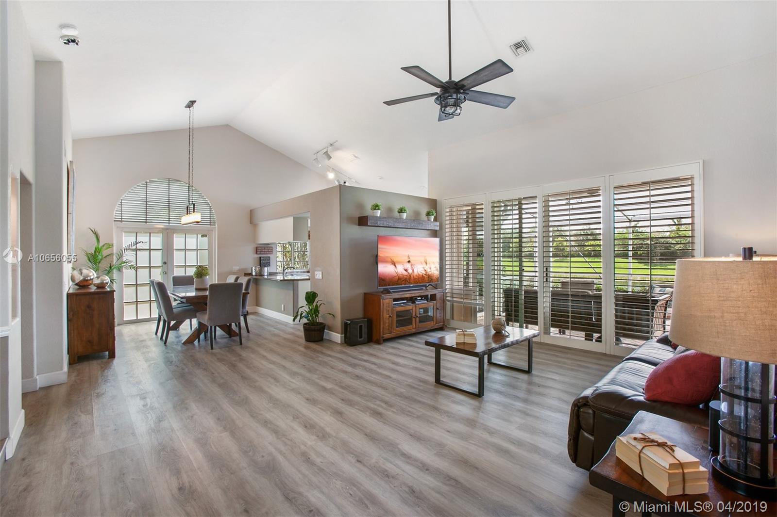 WELCOME HOME TO THIS HARDLY AVAILABLE GORGEOUS 3 BED/2 BATH HOME LOCATED IN THE SOUGHT AFTER COMMUNITY OF THE SPRINGS. THIS COZY JEWEL FEATURES LUSH LANDSCAPING, HURRICANE ACCORDION SHUTTERS, SCREENED IN PATIO WITH WATER VIEWS, NEW VINYL FLOORS IN LIVING AREAS AND WOOD FLOORS IN BEDROOMS, CROWN MOLDINGS, PLANTATION SHUTTERS AND BAMBOO SHADES, STAINLESS APPLIANCES, GRANITE COUNTER TOPS, DOUBLE OVEN, VAULTED CEILINGS, 2 NEW HURRICANE PROOF SKYLIGHTS, RENOVATED BATHROOMS WITH SEAMLESS SHOWER ENCLOSURE AND JACUZZI TUB, COMMUNITY POOL, A+ RATED SCHOOLS, COMMUNITY POOL AND WALKING DISTANCE FROM WESTON TOWN CENTER. NEW SECURITY SYSTEM FEATURES ALARM SYSTEM, SURVEILLANCE CAMERAS & REMOTE FRONT DOOR LOCKING & UNLOCKING SMART LOCK. CL0SE TO MAJOR HIGHWAYS & MALLS.