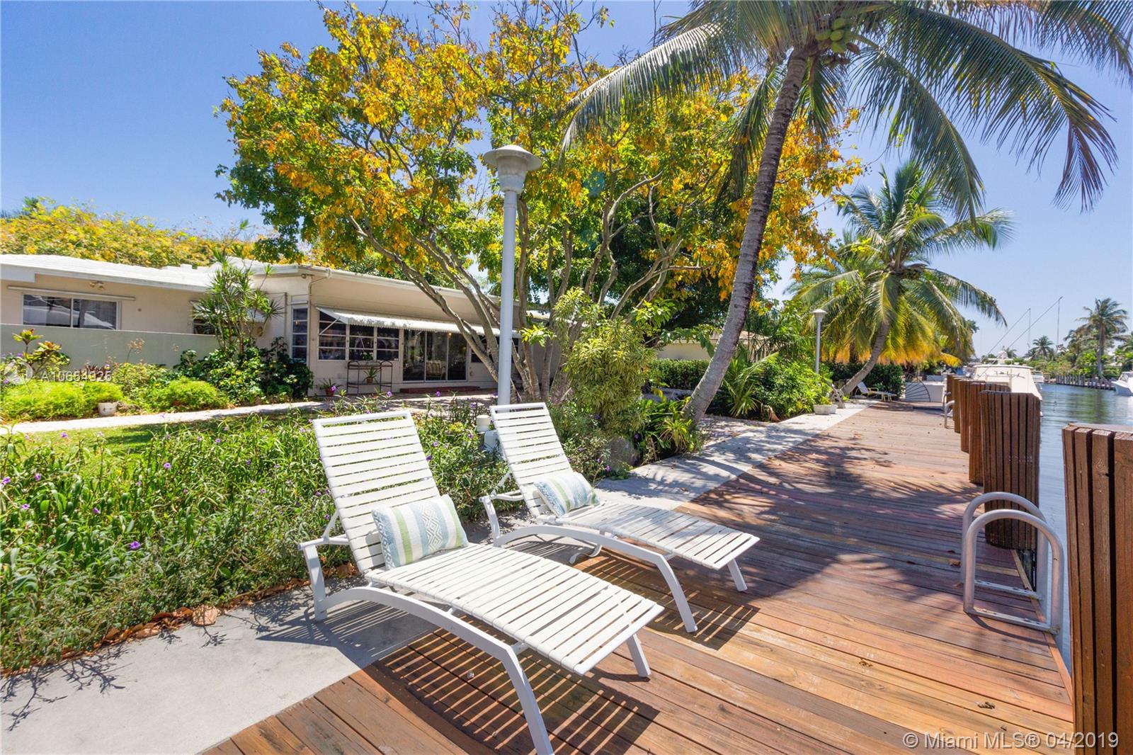 Rarely does a S. Las Olas Isles true mid century modern home on a Sailboat Depth Street become available. 1946 Architecture by renowned Nels S. Jacobson, who has property listed on the National Register of Historic Places. Spectacular boaters’ property offering 100’ deep water dockage, Seawall Updated in the 90's, quick ocean access, no fixed bridges. Incredible waterway views of all gorgeous newer homes, mature landscape, on palm tree lined cul-d-sac street, easy walk to beach, shops, dining. Split floor plan w/ AC Florida room leads to expansive yard; easily accommodates pool. Upgrades incl: volume ceilings, T&G detail, architectural fireplace, corner windows & original terrazzo floors w/ brass inlay. Pavered backyard & circular driveway. 2 car garage. Enjoy vibrant Ft. Lauderdale now!