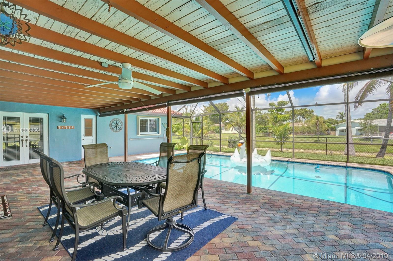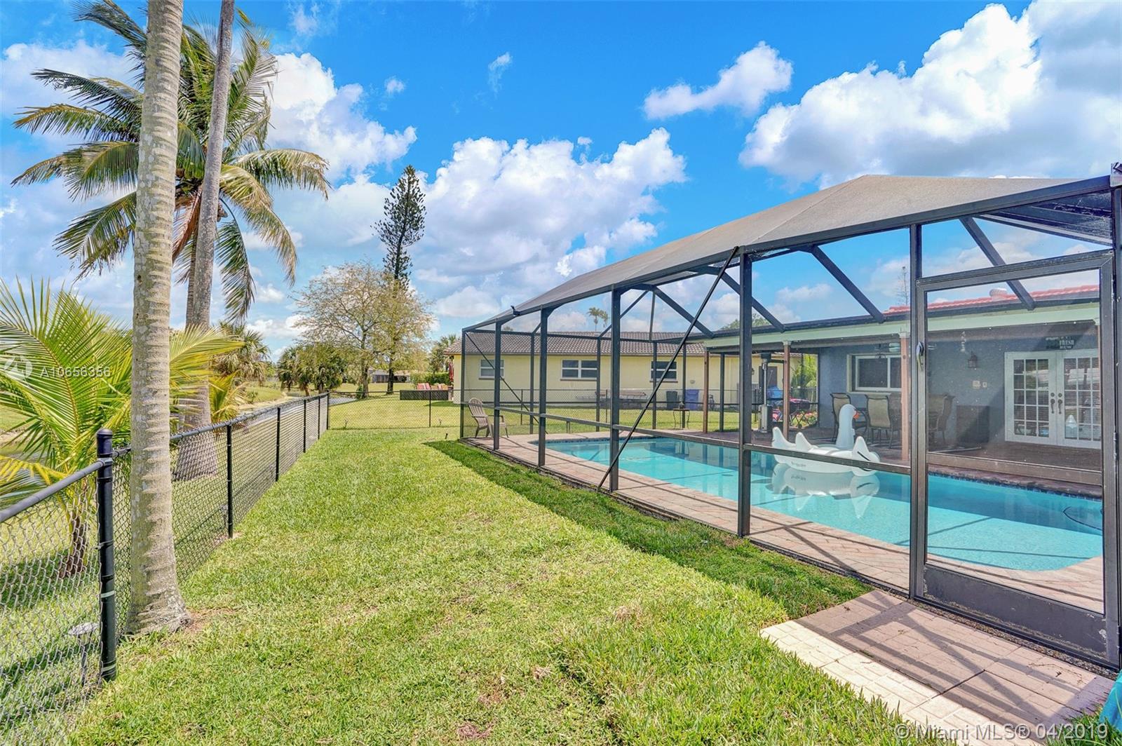 Enjoy peaceful canal views from the large screened lanai with LED lighted pool. This 4 BR 2 Bath home also has an office, circular drive and No HOA while being perfectly situated on a pie shaped lot with over 90' feet on the canal. Stainless steel appliances, new tile floors and wood floor in the living room. New black chain link fence and sprinklers that get h20 from the canal. Renovated master bath, new blinds, impact windows, entry door and french doors, hurricane shutters, crown moulding and baseboard, knock down ceilings and updated kitchen with granite countertops. New roof in 2014 and water heater in 2016.