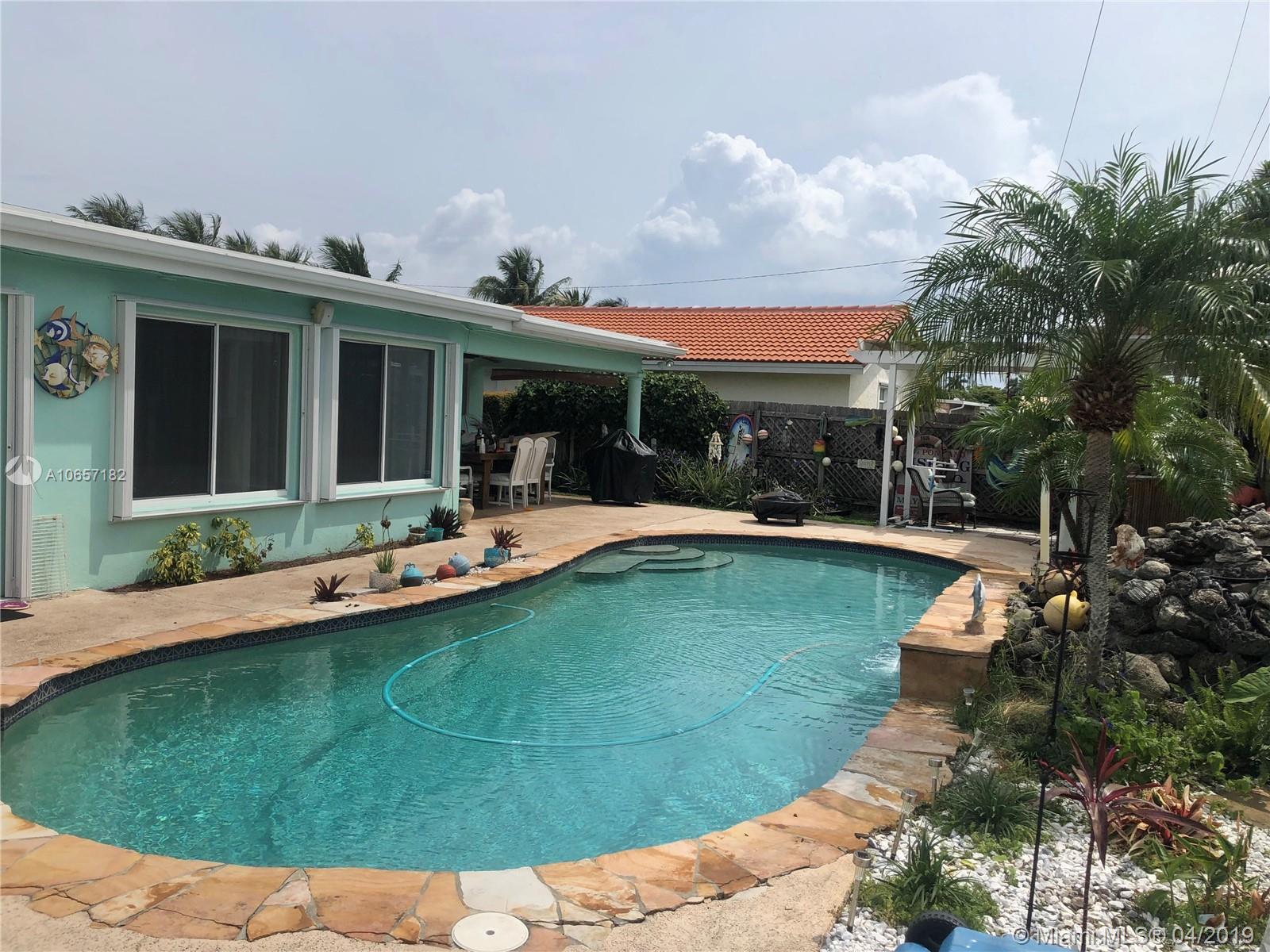 Beautiful 3bed/2bath + additional office/den with circular driveway and one car garage home located in highly sought after Lyons Park neighborhood. Open floor plan, great for entertaining. Updated kitchen and new stainless appliances, new roof (2016), new tub in bathroom, pool motor (2019), hot water heater (2019), french doors, accordion shutters. House tented in 2018 with renewed insurance. Beautiful fenced backyard with tropical landscaping and a beautiful updated 'salt system' pool. Enjoy privacy in your own oasis with your friends and family. Freestanding pergola with paved sitting area and bar. Big laundry room/pantry. Has extra space on driveway to park additional cars, RV or boat. Zoned for top rated McNab elementary school. Close to shopping, dining, beaches and I-95.
