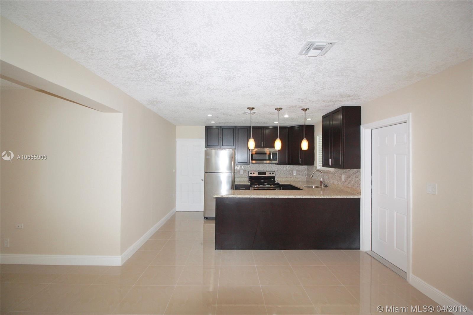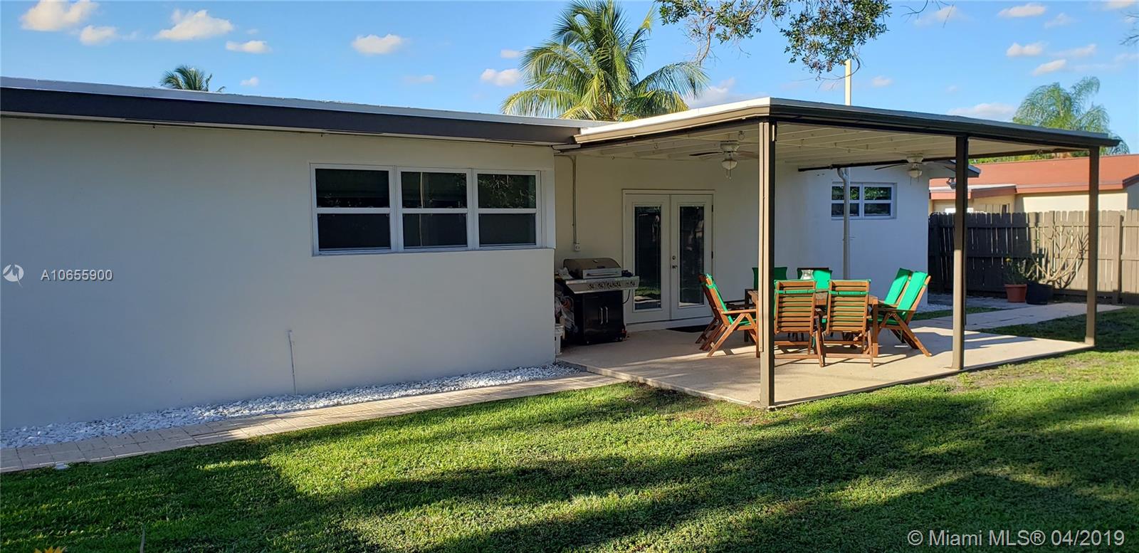 Lovely 3BR/2BA 1 Car Garage home on a quiet street with private fully fenced yard. This home features hurricane impact windows and front door, a gourmet kitchen with granite counter tops, wood cabinets and all stainless steel appliances. Utility room with washer and dryer, ECO Tankless water heater. Bright open layout with tile floors in the living area and laminated wood floors in the bedrooms. Both bathrooms have been updated. Large private yard with a large porch and garden shed with power and tools included. Concrete driveway has space for up to 4 cars. Close to shopping, restaurants, schools, transportation, all expressways and the Hard Rock Casino. NO HOA.