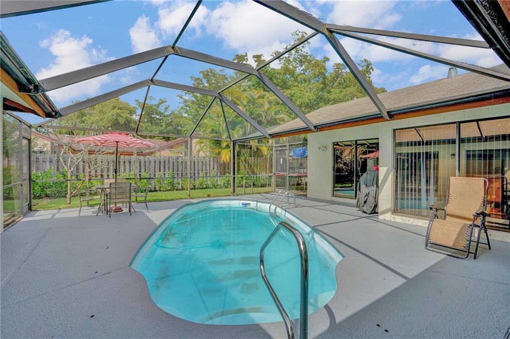 MUST SEE! Immaculate 4/2 home located in the Heart of Coral Springs on a large corner lot, with NO HOA! Finished in a neutral decor, there is a nice open feel to this home. Upon entrance, the Living room skylights provide a light and bright atmosphere. Split Bedroom Floor plan with Ceramic Tile and Laminate floors throughout (No Carpet). Big kitchen with a snack counter opens up to the family room. Master Bedroom features a walk-in closet, and a bathroom with dual sinks. Most rooms overlook and open up to the screened in pool and patio area. Fenced in yard for maximum privacy. The home features an Inside laundry room and so much more! DON'T WAIT! Call Today to see this well maintained home before it's too late!