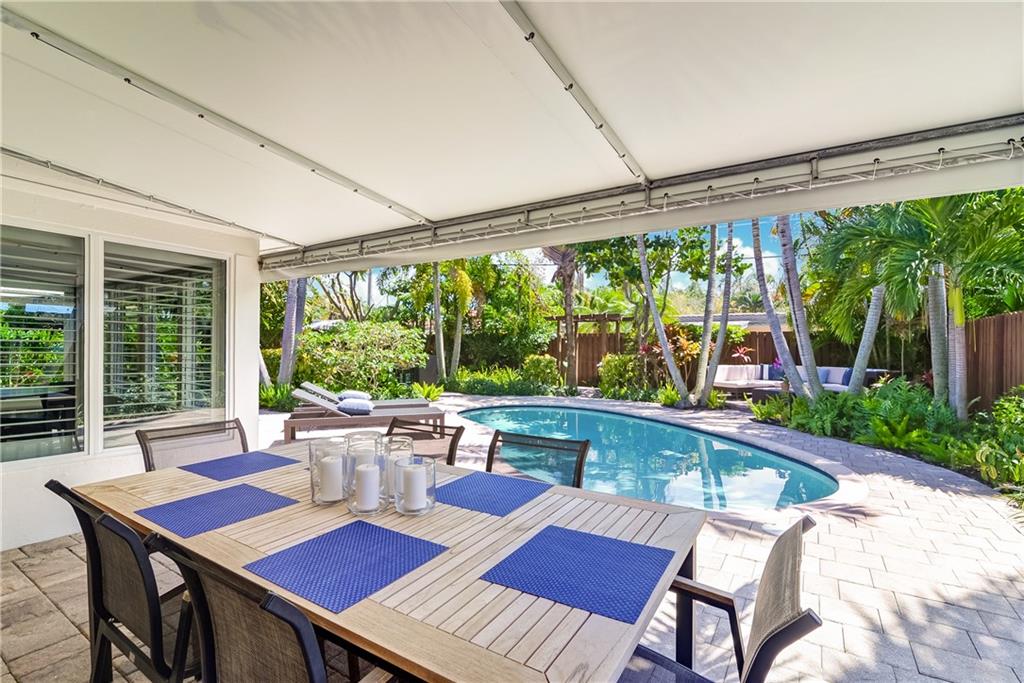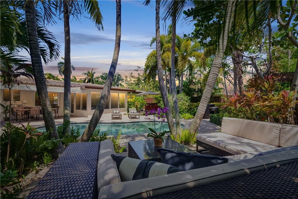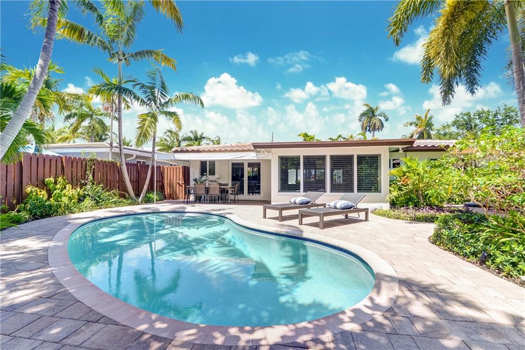 Your own private resort in highly sought after North Ridge section of Poinsettia Heights. This beautifully landscaped home, features light/neutral tile and paint throughout, outdoor bar, heated saltwater pool, and a backyard perfect for entertaining. Updated with hurricane impact windows, plantation shutters, granite counters, stainless appliances, tile roof, refinished pool, landscape lighting, irrigation system and new fencing. Indoor laundry room and carport. Close to beach and popular shopping / dining.