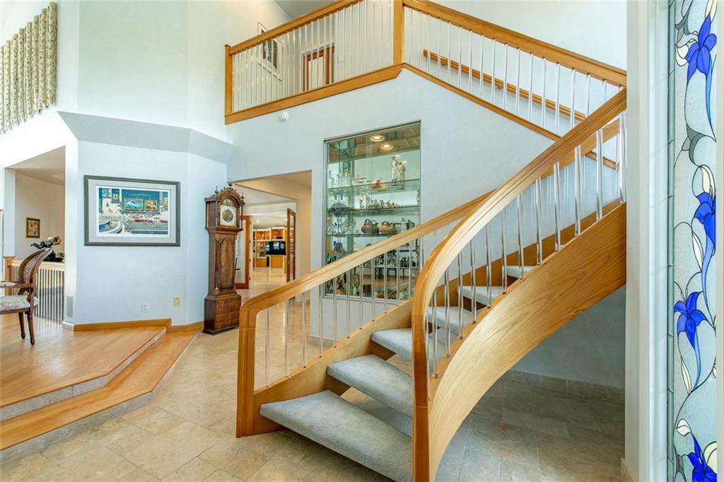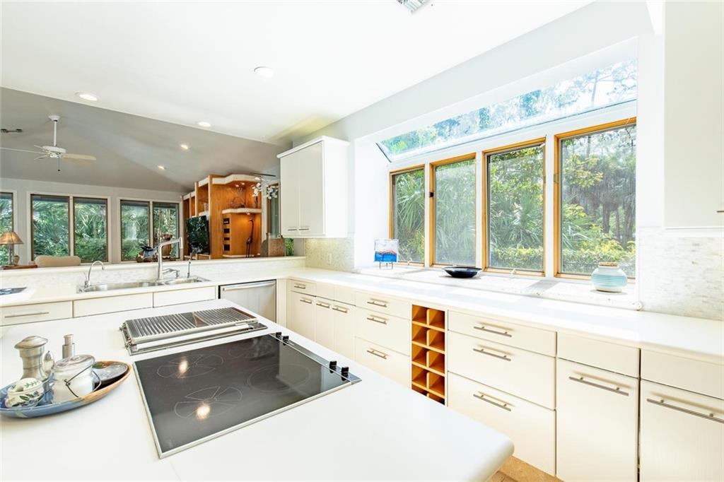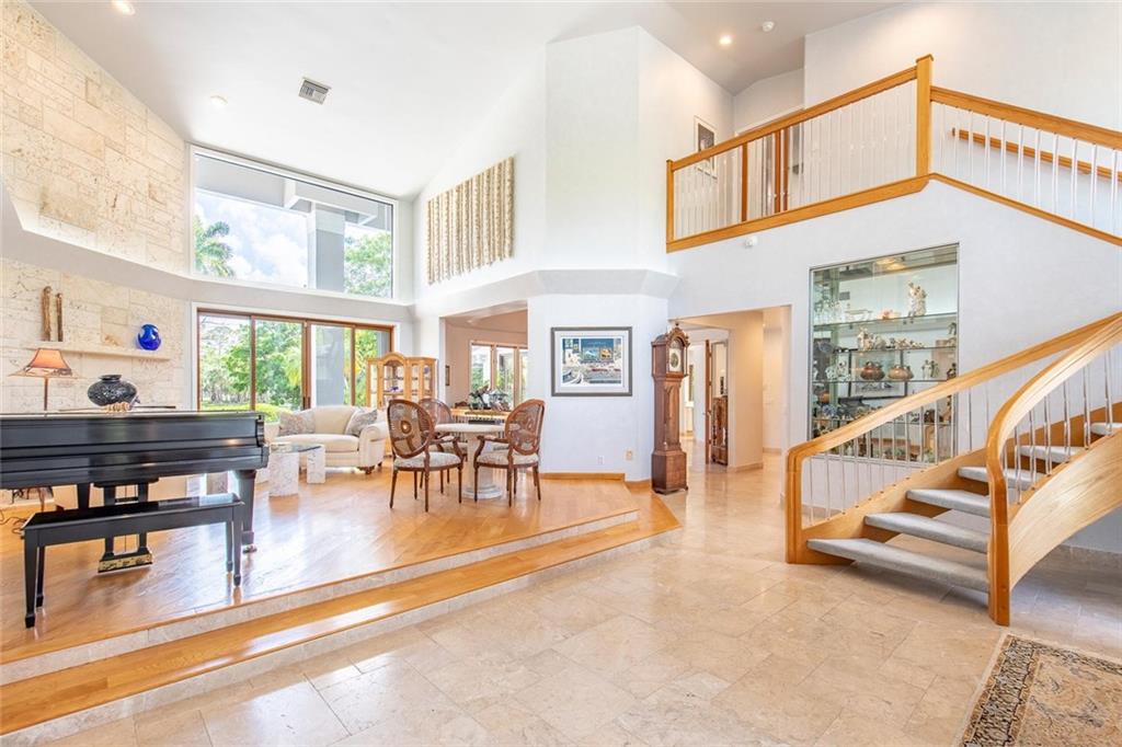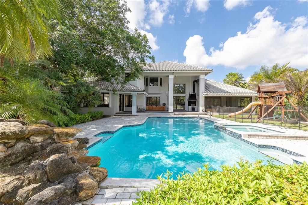 Custom estate, cul de sac, over one acre, lakefront lot & private tennis court. 5 dedicated bedrooms+ off+ hobby rm & sink, pantry rm, huge laundry room. 20x40 pool, spa, child fence. Playground area, multiple patios, lush tropical foliage provides privacy in a park-like environment, fenced. Entertaining family enclave! Light oak trim, Peachtree windows, generator, accordion hurricane shutters+ cooks dream custom hi end kitchen. Wine lovers refrig & bar. Natural light, built-ins & quality features abound.