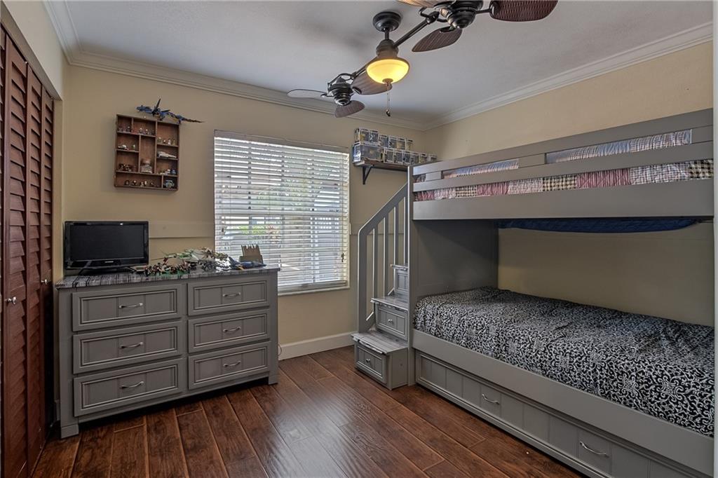Lovely and meticulously maintained 04 bed/03 bath home located on cul-de-sac. Interior features tons of upgrades, porcelain tile, engineered wood flooring in bedrooms, crown molding throughout, dual sinks in master bathroom and guest bathroom, granite countertops in kitchen and bathrooms. Den converted into fourth bedroom en-suite/mother-in-law quarters efficiency with private entrance. Exterior features fantastic spacious paved patio with lots of elbow room and extra seating for entertaining around terrific built-in barbecue grill, all surrounded by luscious landscape and mature trees, plus paved driveway. It will not last long!!