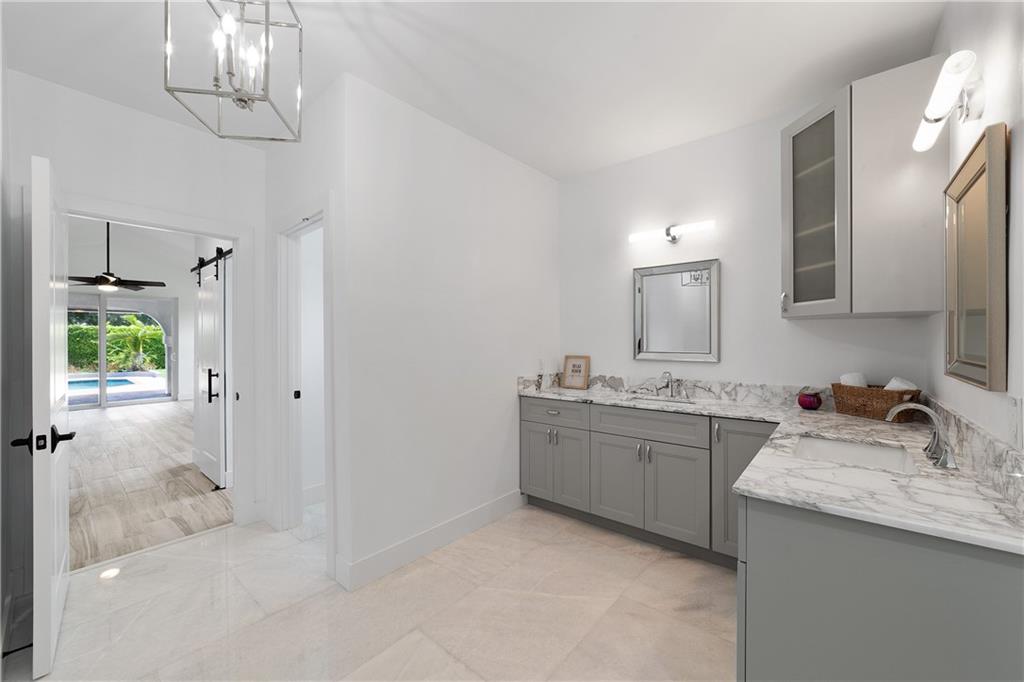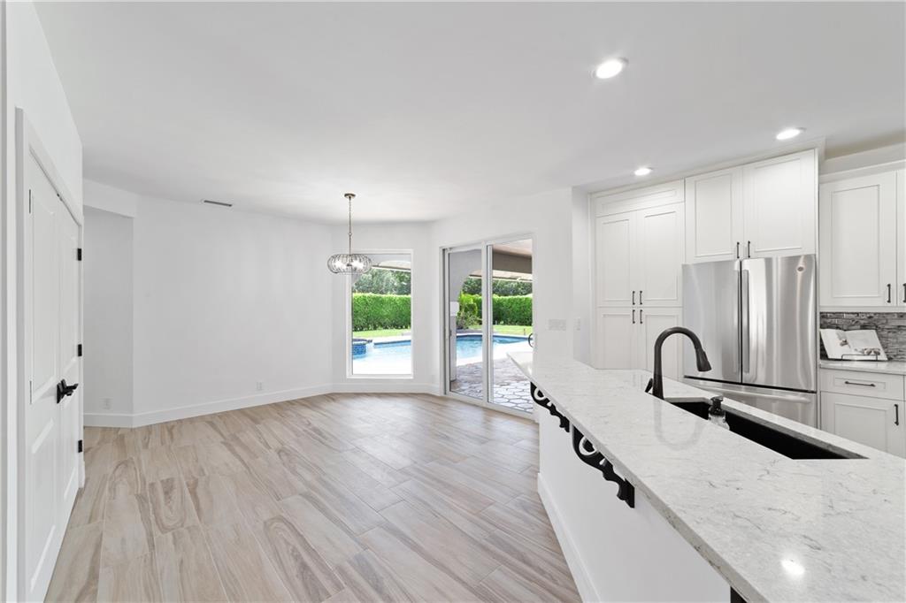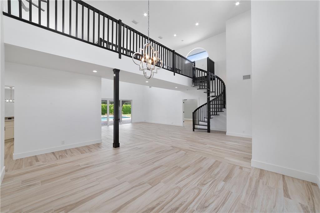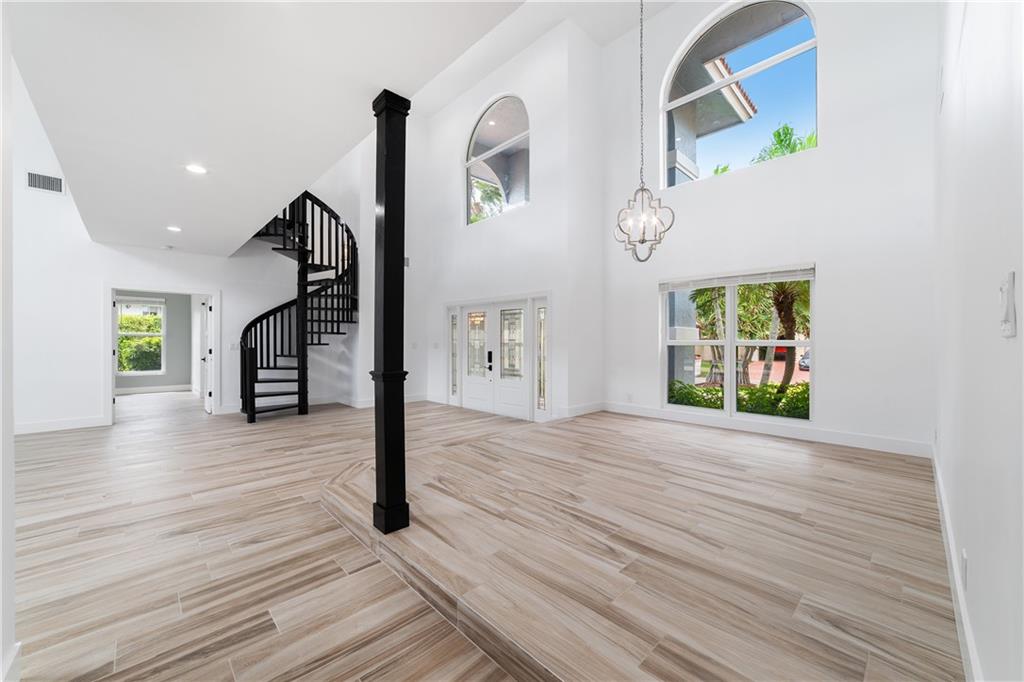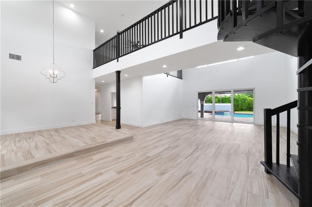 Rare opportunity to own a completely remodeled Eagle Trace residence with impact windows & doors throughout! This masterpiece boasts 4 bed, 4 full baths, 2 half baths, 2-car garage and pool with spa. Wood-look tile throughout and LED recessed lighting. Open layout offers formal living room, formal dining and family room plus a loft with wet bar and a rooftop terrace! Chef's kitchen offers maple cabinetry, peninsula and breakfast bar, quartz countertops, black granite undermount sink, sensor touch faucet and GE Profile appliances. First-floor master suite boasts his/her closets with barn doors, vaulted ceilings and a sliding glass door out to the pool deck. The en-suite features an oversized shower, marble tops, Thassos flooring and a free-standing tub. 4 Zoned AC unit and freshly painted.