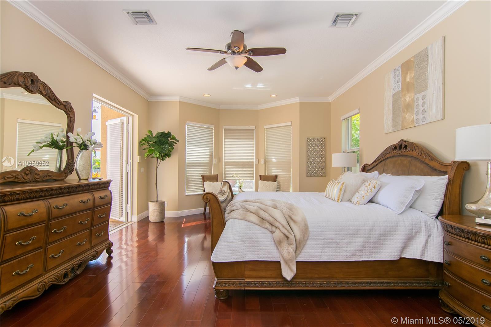 Superb 2003 6 BR, 6 Bath, waterfront, heated pool home in exclusive double-gated Enclave of Grand Palms, Pembroke Pines' premier golf resort community. Cathedral ceilings, Saturnia marble floors, impact windows, gourmet kitchen, wood cabinetry, granite counters, newer Sub-Zero & Bosch appliances, double wall oven. Theater, loft, office configurations. Relax, entertain w/ gorgeous pool & lake views, fenced, tropically landscaped yard. Walk to golf clubhouse w/restaurant, bar, hotel, fitness, tennis, shopping, theater, new Whole Foods & dining. 4 zone climate control with 4 newer efficient A/Cs, 15 KW instant on generator. 4 Car Garage by model w/ 2 converted to beautiful first floor in-law or nanny suite by previous owner. Grade A schools. Close to I-75 for easy commutes in every direction.