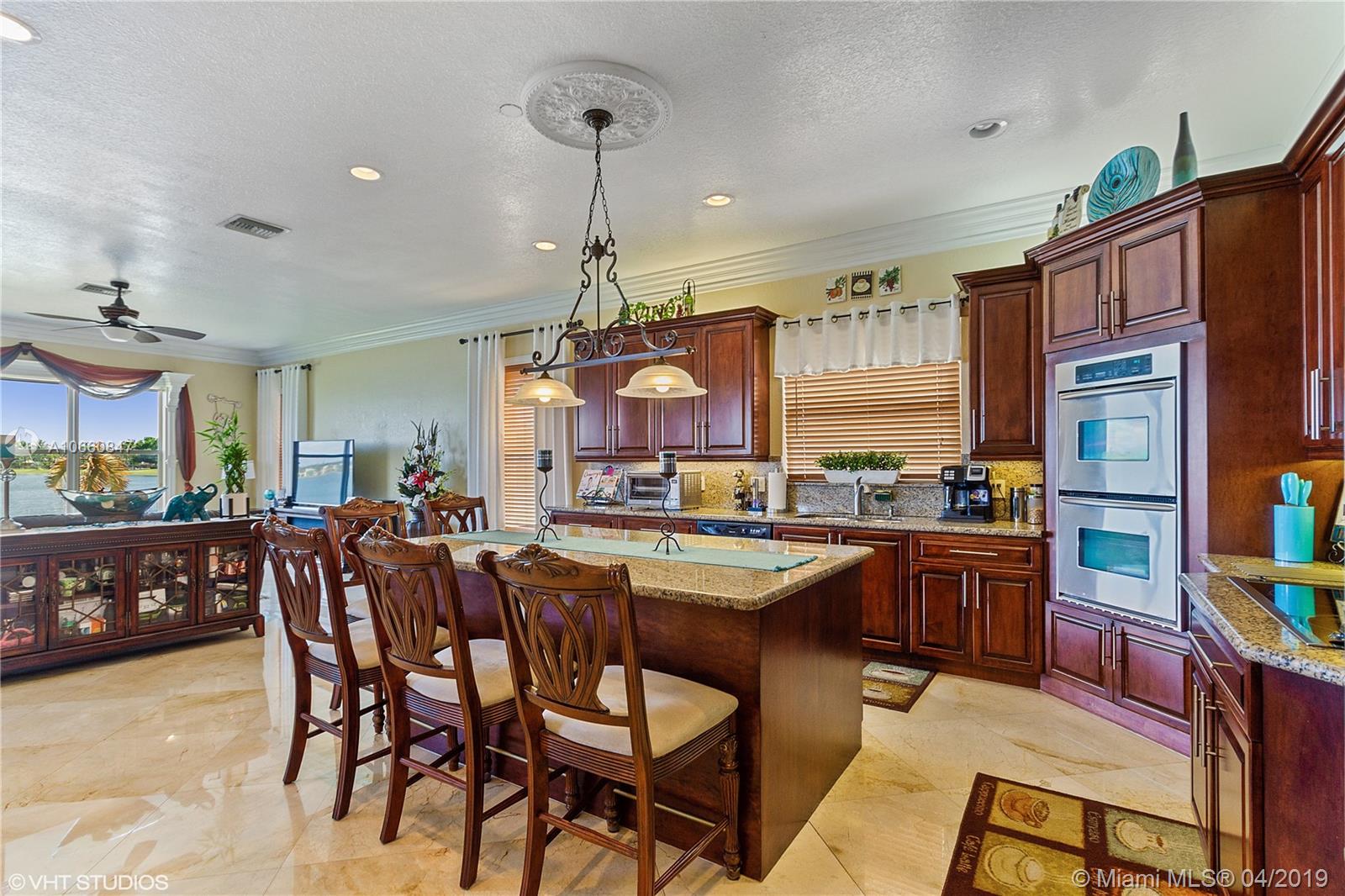 Step inside a spectacular 6 bedroom 5 bathroom estate home and be greeted with exacting standards, premium finishes, spell bounding lake views, adorned by a new wooden deck. This oversized home features a full bed-bath down stairs plus game room. Marble floors throughout home, recessed lighting, custom moldings, custom wooden cabinets, with an open kitchen with island, separate breakfast area, stainless steel appliances, granite countertops. Accordion shutters for all openings. Custom wood staircase leads you upstairs to an expansive Loft with a full sized balcony, overlooking another lake view. Five bedrooms upstairs three of which includes a full bath. Oversized Master bedroom with two Walk-In closets and separate shoe and lining closet, Roman tub and Standing shower, dual sinks & more.