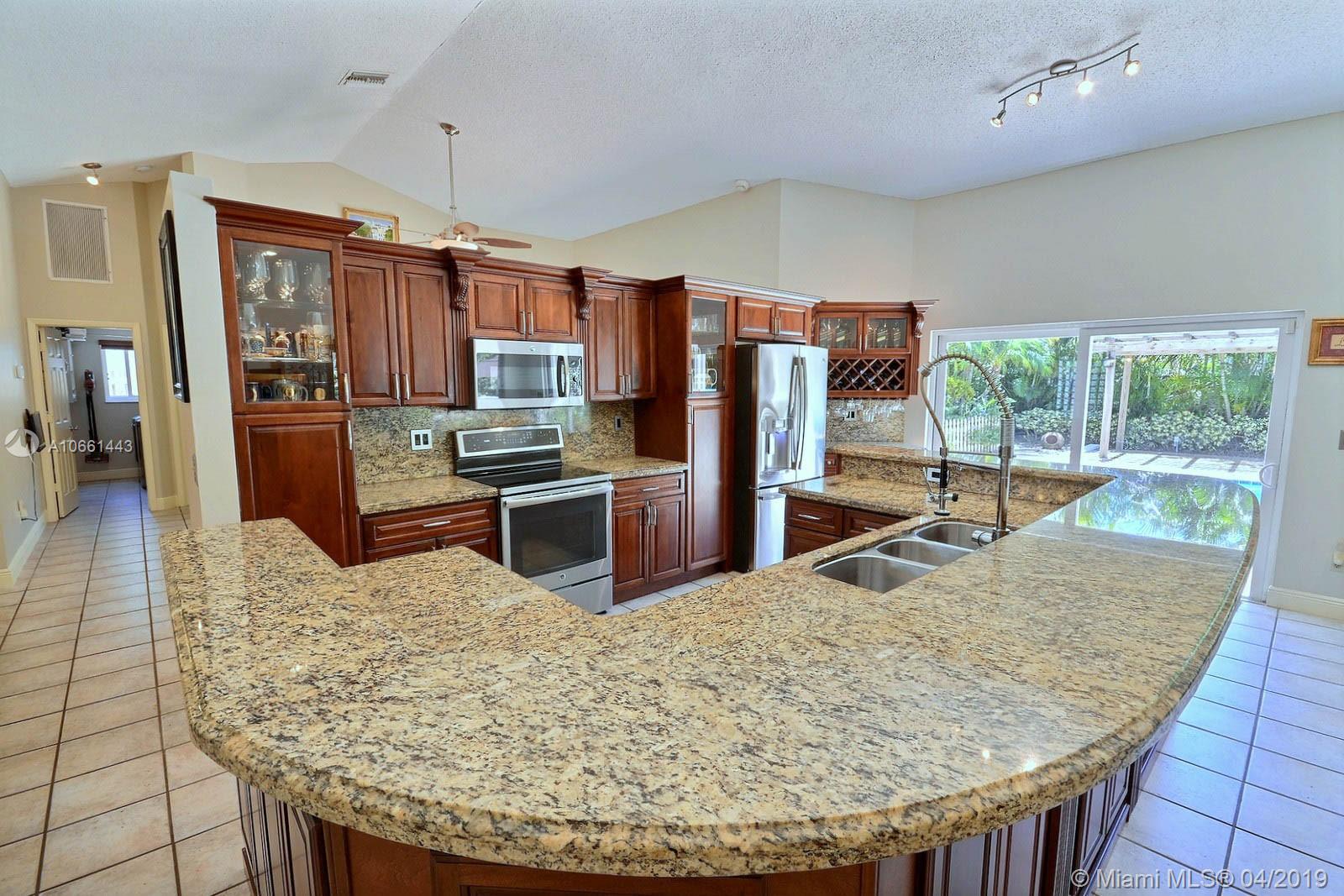 COMPLETELY REMODELED HOME ON 13,844 CUL DE SAC CORNER LOT FEATURES GORGEOUS UPDATED KITCHEN W ISLAND, STAINLESS STEEL APPLIANCES, GRANITE TOPS, BAR W WINE COOLER & BREAKFAST NOOK. SPLIT FLOOR PLAN FOR PRIVACY W SPACIOUS MASTER SUITE, MASTER BATH W DOUBLE VANITIES & LARGE SHOWER. HIGH CEILINGS, ELEGANT FEATURES, CUSTOM BLINDS, CCTV CAMERA SYS, TANKLESS WATER HEATER, NEW ROOF, HURRICANE IMPACT WINDOWS & DOORS (W ACCORDION SHUTTERS), FENCE W DOUBLE GATE. RESORT STYLE, TROPICAL OASIS W BRILLIANT POOL, OUTDOOR KITCHEN AREA W FRIDGE & STORAGE, FIRE PIT, SITTING AREA, DOLL HOUSE, OUTDOOR SHOWER, 2 PERGOLAS, LARGE PATIO DECK W 16X16 GOLD TRAVERTINE, LUSCIOUS LANDSCAPING. GATED COMMUNITY OF EMERALD LAKES ESTATES W LOW 100/M HOA FEE INCLUDES ADT ALARM MONITORING.