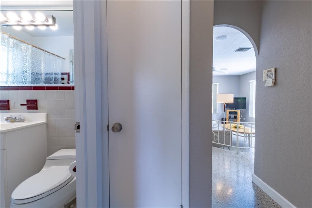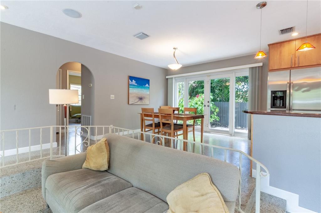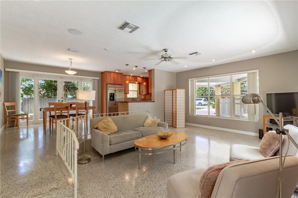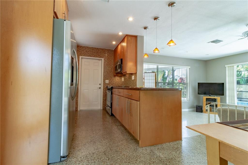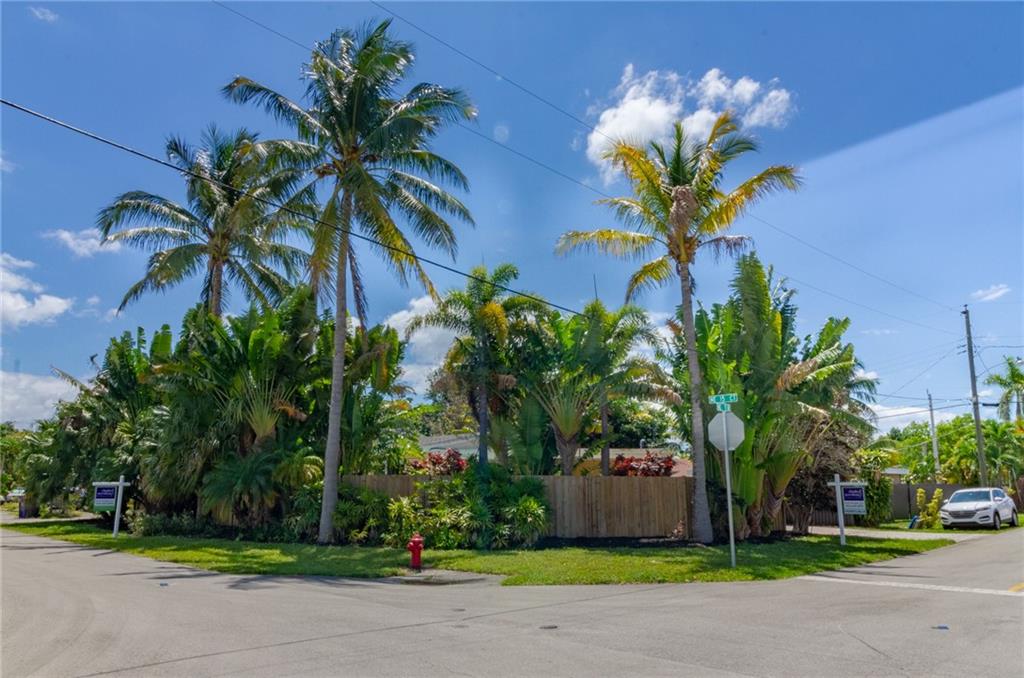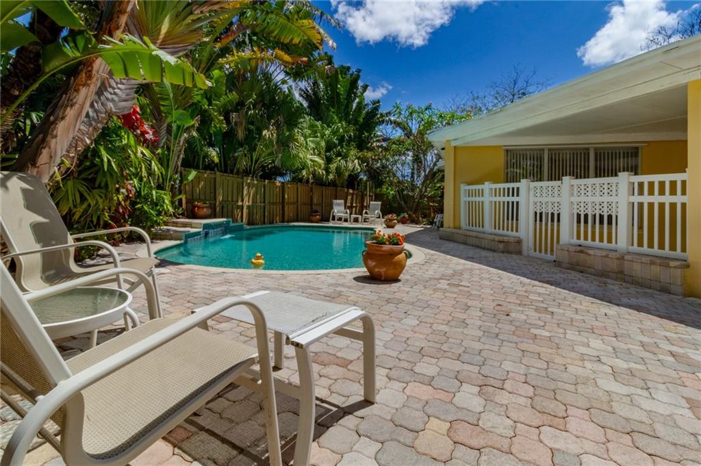 don't miss the photos for this charming home on an oversized and lushly landscaped corner lot. the pool area, in full view from the dining and step down living area add to the beauty of this home. polished terrazzo throughout for easy care and living. the geographic positioning of this home makes for lots of natural light, especially in the living areas. entire property is fenced. updated galley style kitchen makes being in the kitchen easy and convenient to the raised dining area. bathroom makes good use of combo tub/shower with a window. double carport with access for a standard sized vehicle and a compact is a real plus in the florida sun. shaded patio off the dining area is easily accessible for grilling or just chillin, while the pool deck affords plenty of sunshine!