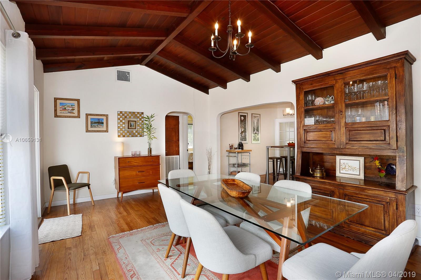 Stunning! Totally remodeled 2/1 charming ranch home in Miami Shores. This gem features high impact windows and doors, hardwood floors, custom lighting throughout the house. Original charming Stone fireplace and high vaulted ceilings in the living room. The kitchen has been updated with SS appliances, granite counter tops and has a large window overlooking the large back yard. This house has amazing natural light with lots of windows, Plus impact glass french doors that open up to a large back yard. Back yard features a patio and fenced yard with plenty of room for a pool. Large garage (1 1/2 car) to fit a car and still have plenty of room for storage with a laundry room and custom cabinets. House has new AC, septic, updated electric and plumbing. Bring your fussiest buyers. Easy to show