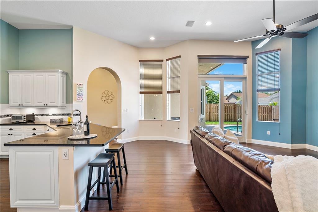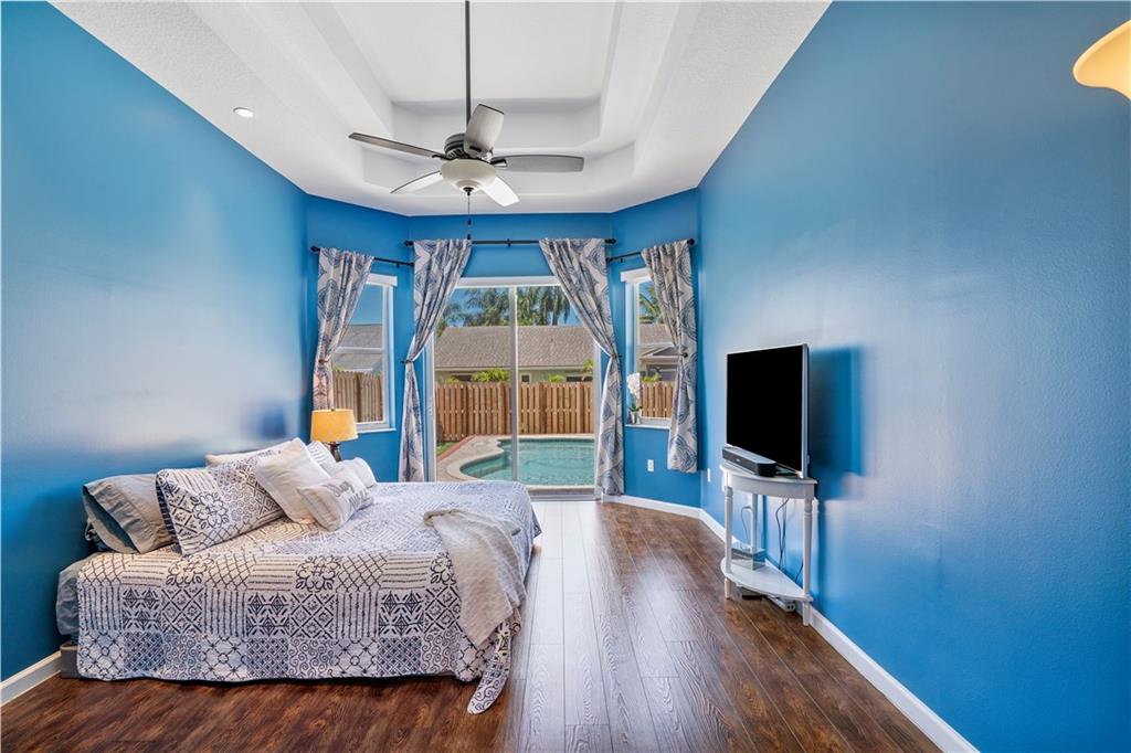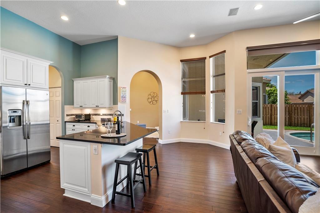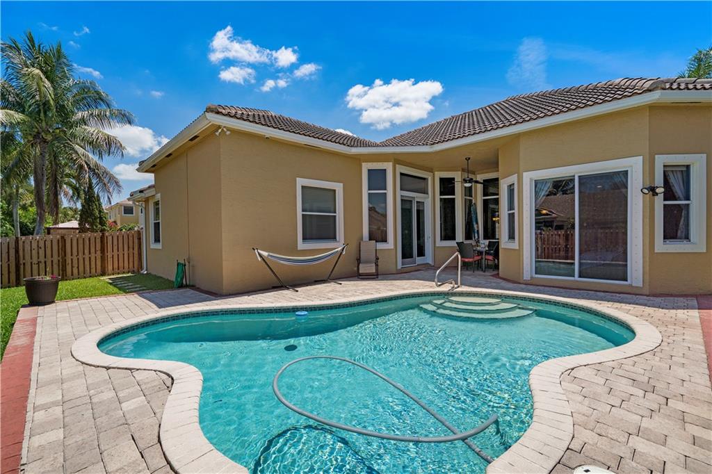 SHOWS LIKE A MODEL! With over $100,000 in upgrades this stunning one story bright & open split bedroom floor plan is like a new home. 4 beds, 2 baths, 2 car garage pool home with new fence, gourmet kitchen featuring white wood cabinetry, quartz, stainless steel appliances & plenty of storage. Master suite w/ new spa styled bathroom, his/her sinks, free standing separate soaking tub, frameless shower, his/hers closets & tranquil pool views. Upgraded second bathroom w/ double sinks and new laundry room with quartz counters. Volume ceilings, foyer entry, Bamboo flooring in main areas, wood laminate in bedrooms, freshly painted in & out, wireless security system, hurricane shutters, Impact sliders in family rm., brand new hot water heater & tons of extras! Gated community with low HOA ($79).
