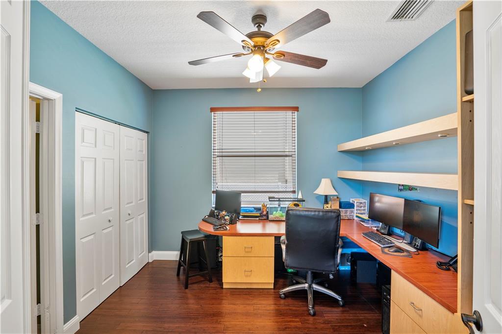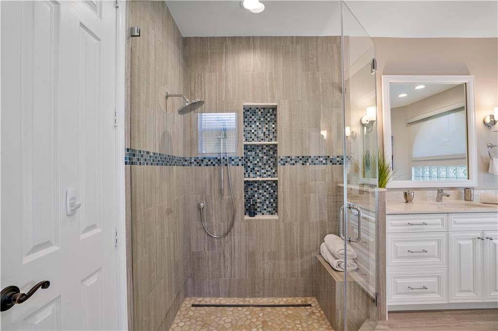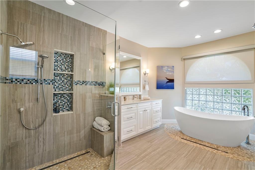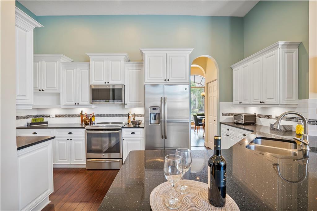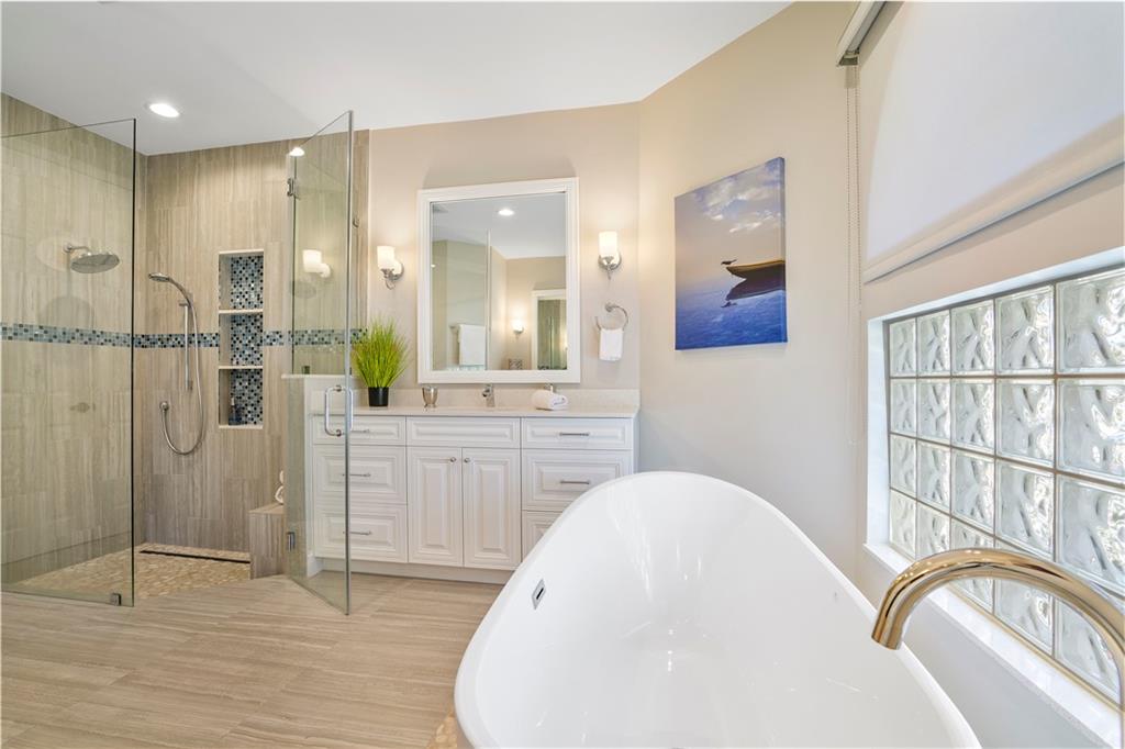 SHOWS LIKE A MODEL! With over $100,000 in upgrades this stunning one story bright & open split bedroom floor plan is like a new home. 4 beds, 2 baths, 2 car garage pool home with new fence, gourmet kitchen featuring white wood cabinetry, quartz, stainless steel appliances & plenty of storage. Master suite w/ new spa styled bathroom, his/her sinks, free standing separate soaking tub, frameless shower, his/hers closets & tranquil pool views. Upgraded second bathroom w/ double sinks and new laundry room with quartz counters. Volume ceilings, foyer entry, Bamboo flooring in main areas, wood laminate in bedrooms, freshly painted in & out, wireless security system, hurricane shutters, Impact sliders in family rm., brand new hot water heater & tons of extras! Gated community with low HOA ($79).