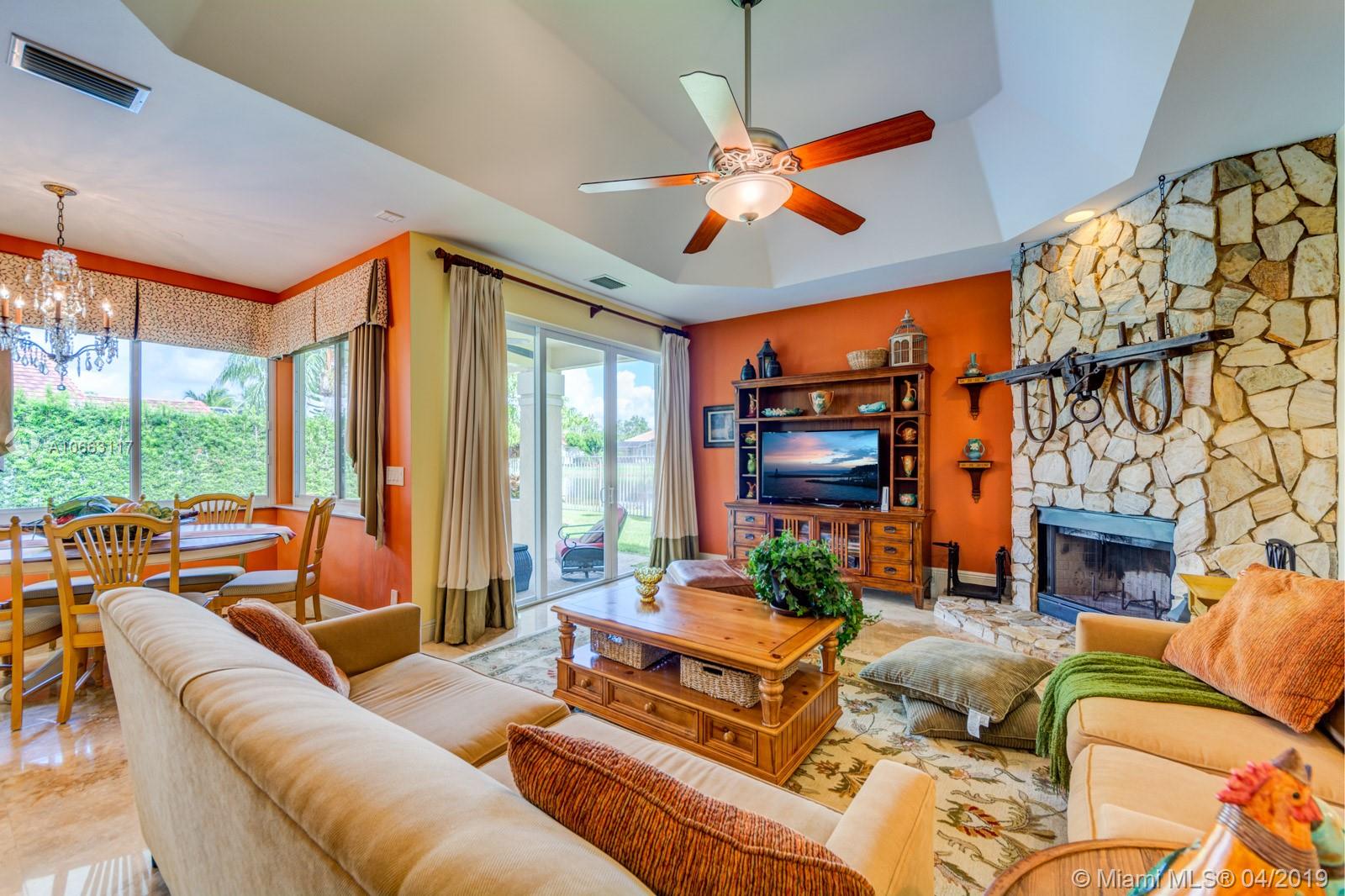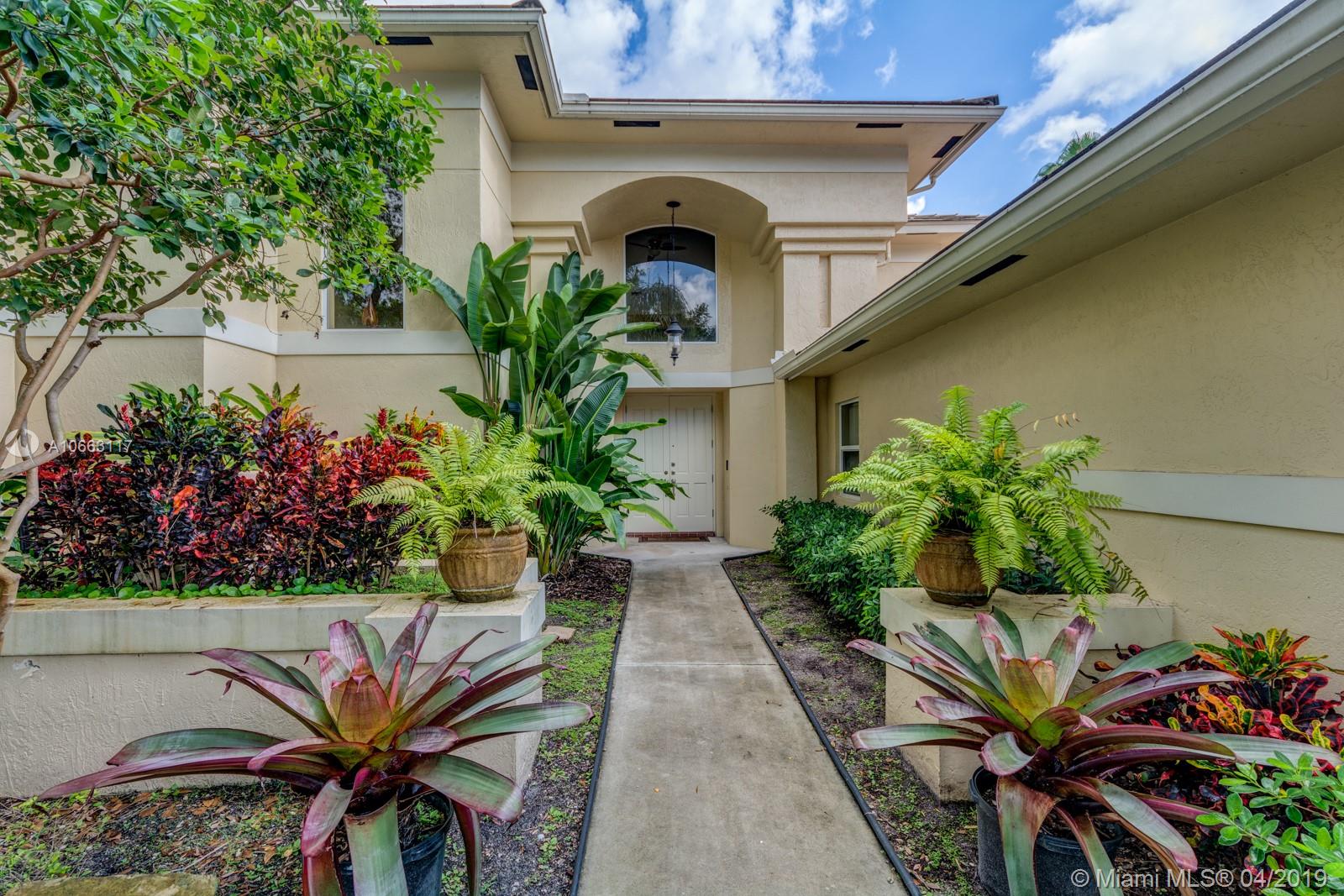Masterfully renovated lakefront home in a gated community in Weston. This property sits on a private cul-de-sac lot and boasts 4 bedrooms, 3 full and 1 half bath plus a study with over 3,600 sq ft. f living space. Formal dining area and living room with double-volume ceilings, large family room with cozy fireplace and gourmet kitchen with casual dining area and breakfast bar. Kitchen features include custom 42" cherrywood Thomasville cabinets, granite countertops, and stainless steel appliances. Master bedroom located on the second floor with en-suite luxury bath with dual sinks, frameless shower & whirlpool soaking tub. All living areas have high impact windows and doors and all social areas have marble flooring. Additional features include a pool and covered patio. A+ Schools.