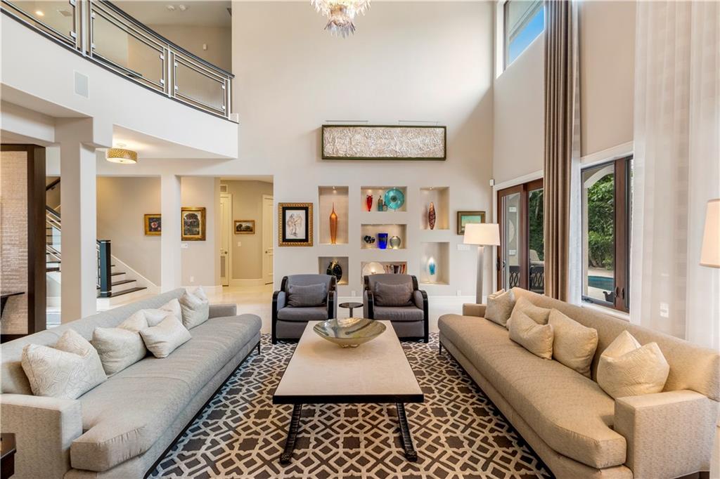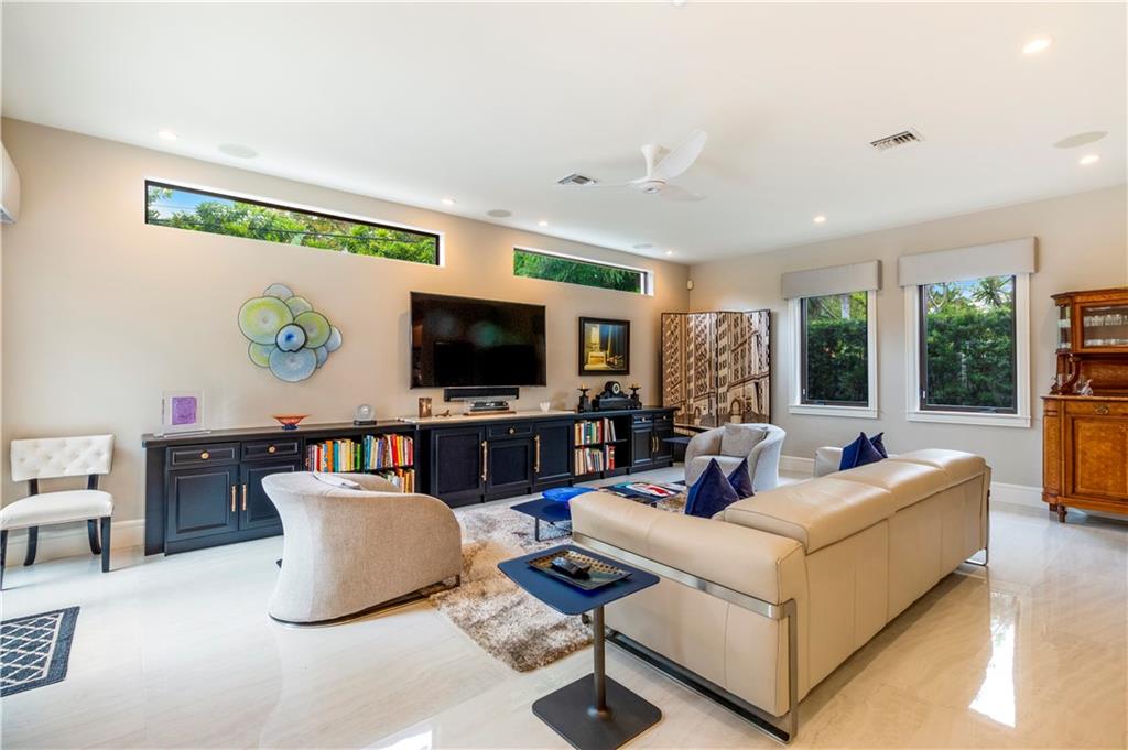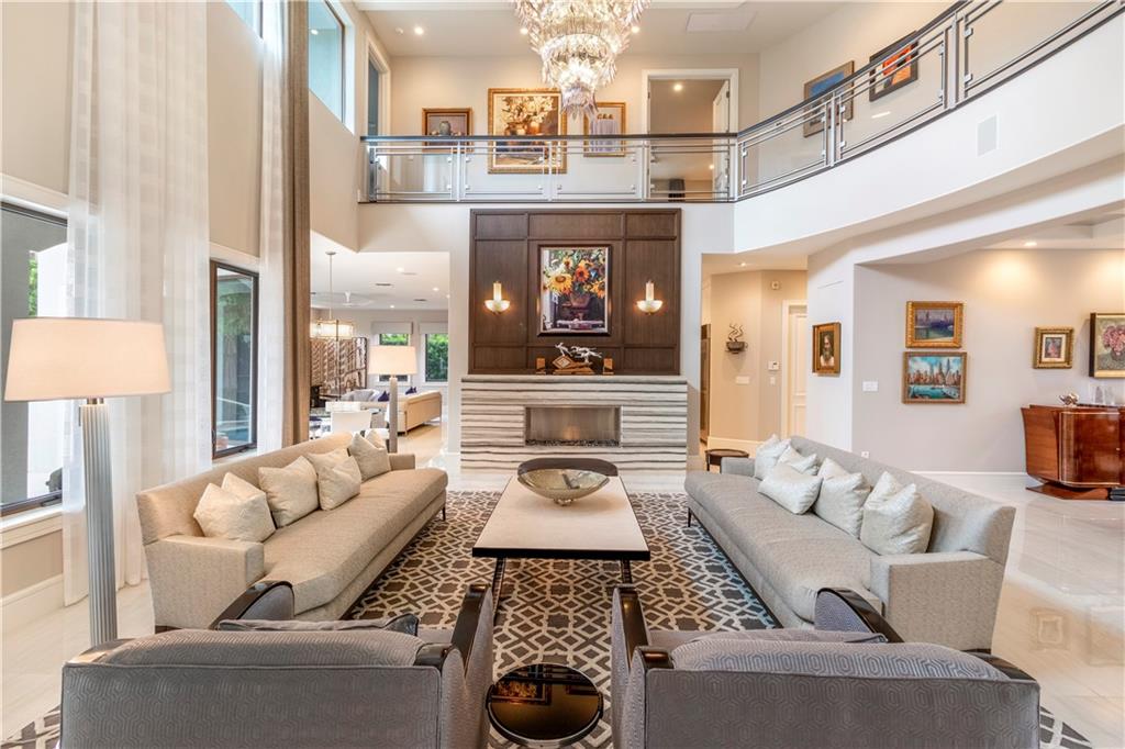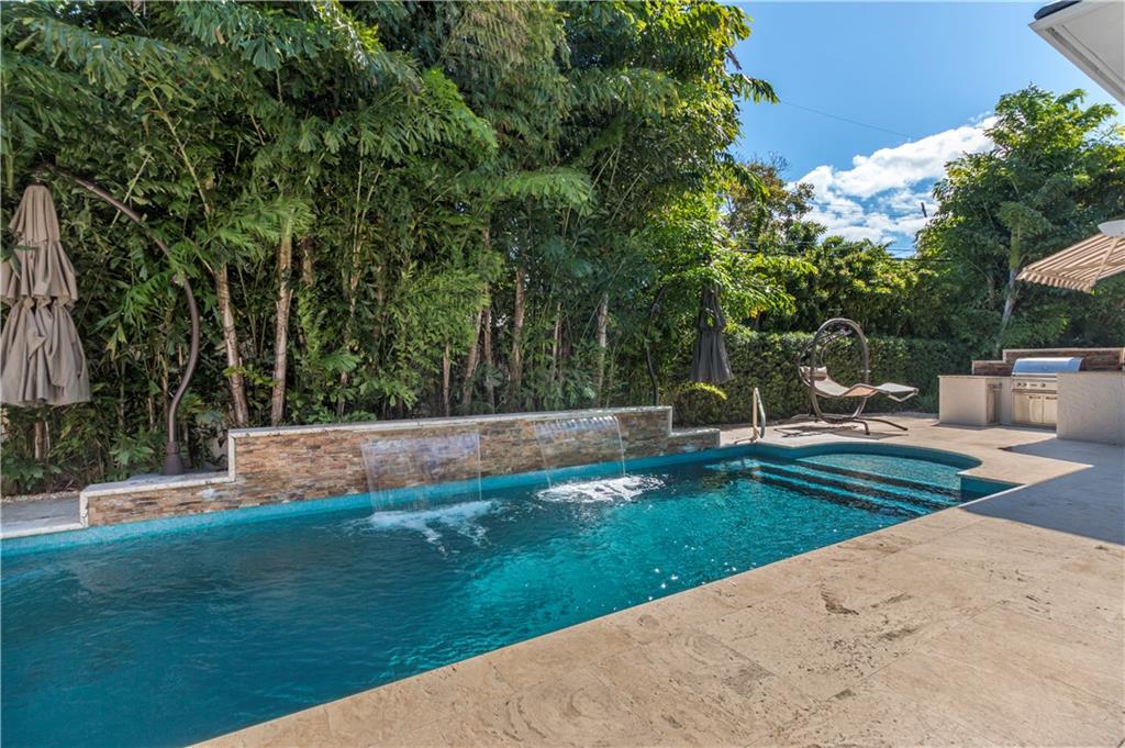 Prepare to live a life of sophisticated luxury in an oasis of serenity. Modern design, a luminous open floor plan & soaring ceilings contribute to the luxurious allure of this highly detailed residence. Situated in the subdivision of Coral Ridge & surrounded by lush mature landscaping for ultimate privacy. The tropical lifestyle is enhanced by multiple doorways integrating indoor & outdoor living spaces. The covered loggia overlooks the heated salt water pool with cascading fountains & custom summer kitchen. The center of the home evolves around a custom culinary kitchen that opens to a large family room. The 1st floor master suite & lavish bathroom provide the ultimate retreat. Custom office, formal dining rm, butler's pantry, sound system throughout, full home generator. Sq ft from IMAPP