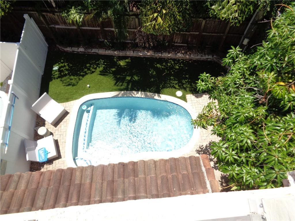 Beautiful 3 story Coral Ridge town home with elevator. Bright and light end unit. First level has 2 car garage, kitchen, living room and dining and 1/2 bath. Your own pool in rear yard. 2nd level features large master bedroom and bath with huge walk in closets. Landing area used as an office.Second guest bedroom with full bath and laundry room. 3rd floor has large family room that leads out to private roof top sun deck. Also another guest bedroom and bath. Great space in excellent condition. Impact doors and windows.