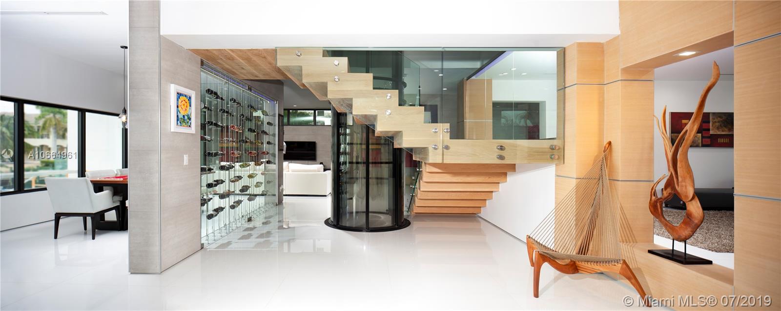 Situated in one of Coral Gables most privileged locations, this ultra-modern home is designed by Calil Architects, Coral Gables premier modern home architects. Comprised of 3 levels & feat. stunning Biscay Bay views from its unique 800 sq ft. approved rooftop loft. This home is equipped with floor-to-ceiling impact sliding doors that span across the width of the house. High ceilings, white glass floors, impact windows & doors, glass elevator, heated pool, full gourmet kitchens, entertainment area with fire pit, 80x13.5 ft dock with space for a 100 ft boat complete this modern residence. Roof loft is being enclosed by 1 inch glass railings. Sq ft includes possible bonus room, ideal for guest/maids quarters with added game room (1,200 sq ft). Home is scheduled to be completed in 2019.