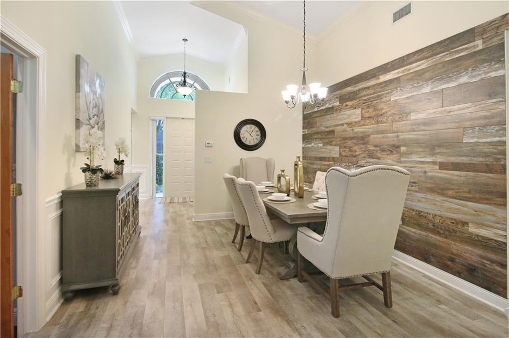Stunning OPEN FLOOR PLAN HOME!!! SHOWS LIKE A MODEL, 1 level home, 4 bedroom 3 full bath 2 car garage + office/den or 5th bedroom***Move-in Ready*** Over $180,000 in upgrades. All 3 bathrooms and kitchen remodeled. High end SS GE Monogram appliances, double oven, custom 42" cabinets, newer waterproof vinyl plank floors (2017), real hardwood floors in bedrooms, crown moulding throughout (2017), newly painted (2017), newer AC (2016)** Triple split floor plan with vaulted ceilings throughout. Owners suite has 2 walk in closets***NO CARPET***Beautiful water views with screened patio (2018). Fully fenced. Great A+ graded schools. Low HOA covers tree trimming, lawn maintenance with sprinklers and community pool. WILL NOT LAST!!!!