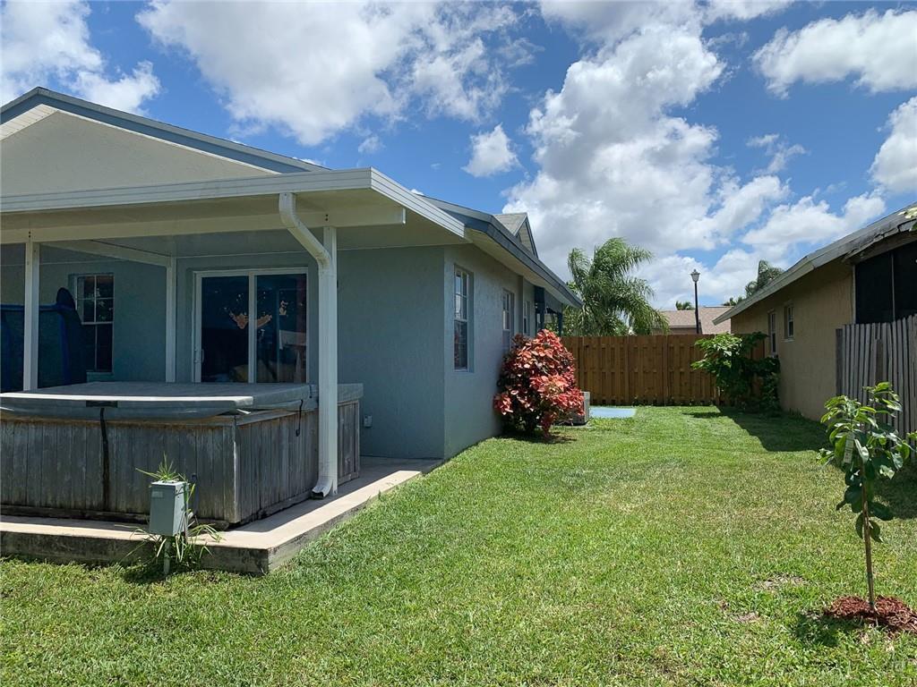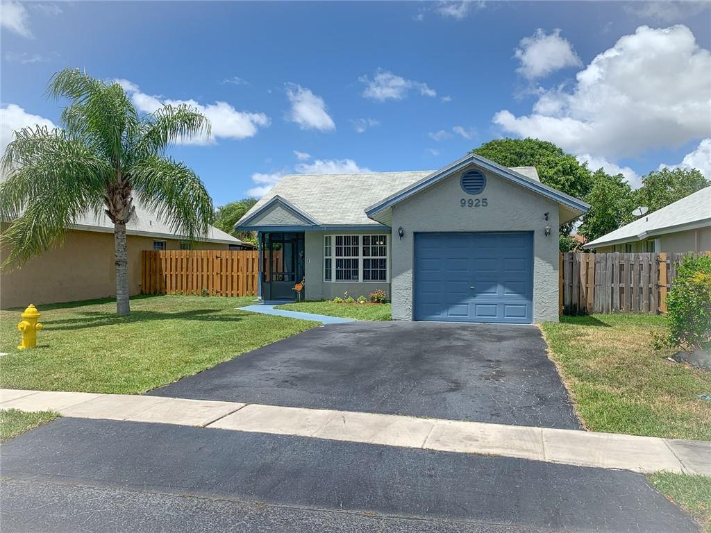 Rarely available and very affordable single-family home in a wonderful neighborhood. The new front screen door leads to an open floor plan w/vaulted ceilings, skylights and plenty of natural lighting. Upgrades include a recently replaced electrical box, hot water heater, garage door opener, window blinds, new baseboards and upgraded wood laminate flooring in all bedrooms. Newer SS appliances include the refrigerator, dishwasher, stove and even the washer n dryer. The backyard was recently landscaped and is completely fenced and private. No rear neighbors. The large covered patio features a hot top with a new pump. There is also a covered side patio. The HOA dues are low and there is a community pool. You are minutes from the Sawgrass Mall, parks, restaurants and the Sawgrass Exp. Hurry
