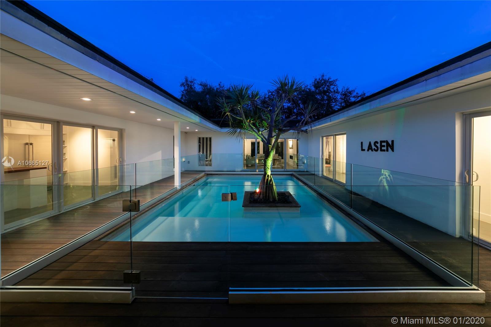 A meticulously renovated architectural gem that sits on a generous 17,400 SF lot in the heart of Coral Gables, this ultra-chic and modern estate is a must-see. This home offers open-concept living and a unique central courtyard that encompasses a resort-style, serene pool. Special features include Italian cabinetry in the kitchen with top-of-the-line appliances, IPE wood accents, and polished cement flooring throughout. The elegant master bedroom comprises large windows, a stunning en-suite bathroom, and an oversized walk-in closet. Guest bedrooms are sizeable and naturally lit, with en-suite bathrooms. Additional spaces include a separate dining room, family room, and media rooms. Minutes from Merrick Park and fine dining restaurants.