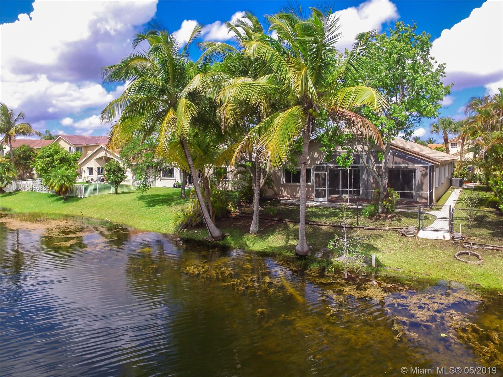 Great value in waterfront 4 Bedroom, 3 bath home in In Gated Emerald Sound of Silver Lakes of Pembroke Pines. Split bedroom layout, 2 car garage, spacious eat-in kitchen, large Master bedroom/bathroom suite with walk-in closet. Enjoy gorgeous lake and tropical views throughout. Screened patio, large backyard, fruit trees. Community pool and playground close by. 2016 A/C. High speed internet and cable included in modest HOA fees. Awesome family-oriented community. Excellent location, close to I-75 and Highway 27 for easy commutes in every direction, close to parks, shopping, dining, Memorial Miramar Hospital. Super Grade A Pembroke Pines/Broward County Schools