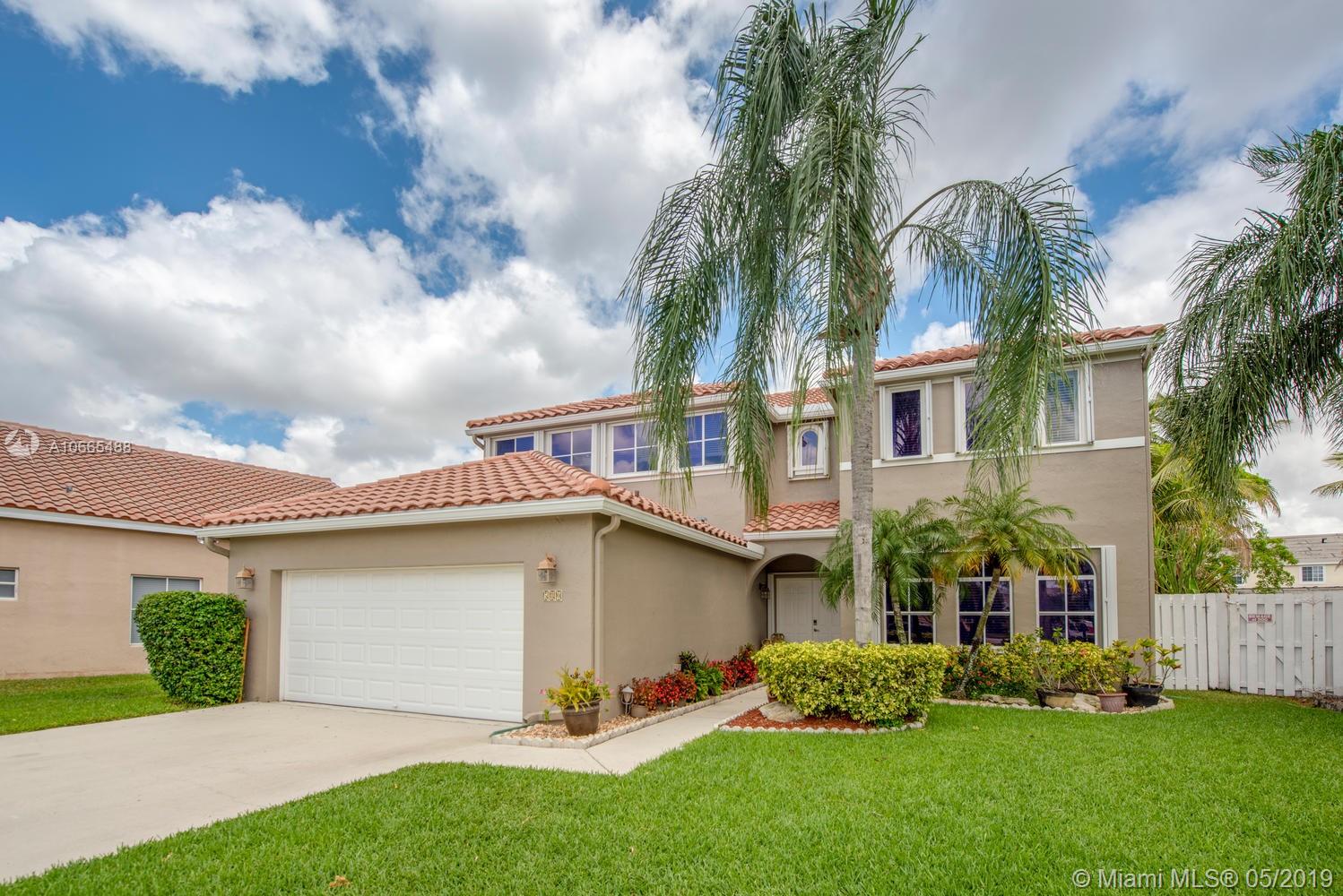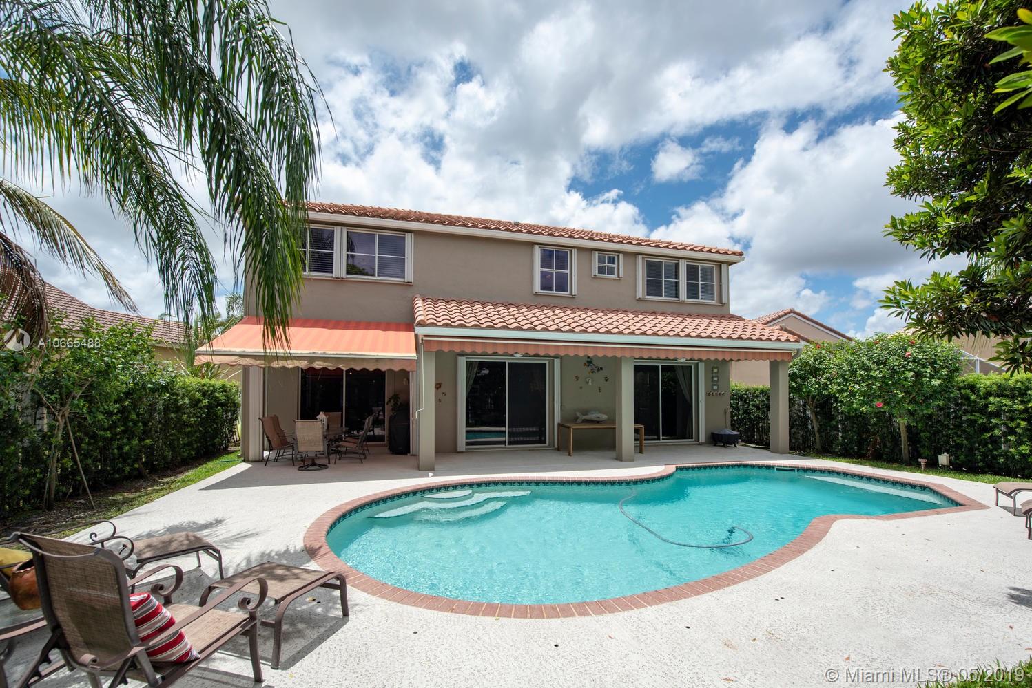 "SHOWINGS TO START SUNDAY, MAY 5!" Tropical Oasis in Gated North Lakes of Weston! Upgraded and Spacious, this 2-Story property boasts a Newer Roof, Wood Floors Upstairs and Wood Plank Tile on First Floor, Plantation Shutters, Heated Pool with Saline System, Retractable Awning, Wood cabinets, Fenced and Beautifully Landscaped. A+ Schools, walk to Eagle Point Elementary - Great community, Great Property! Make your appointment today! Bedroom downstairs currently used as Home Office! Beautifully renovated kitchen with SS Appliances, Glass tile backsplash, Solid Corian Counters, High volume ceilings with Clerestory windows for Natural Lighting! Make your appointment today, Showings start Sunday, May 5!