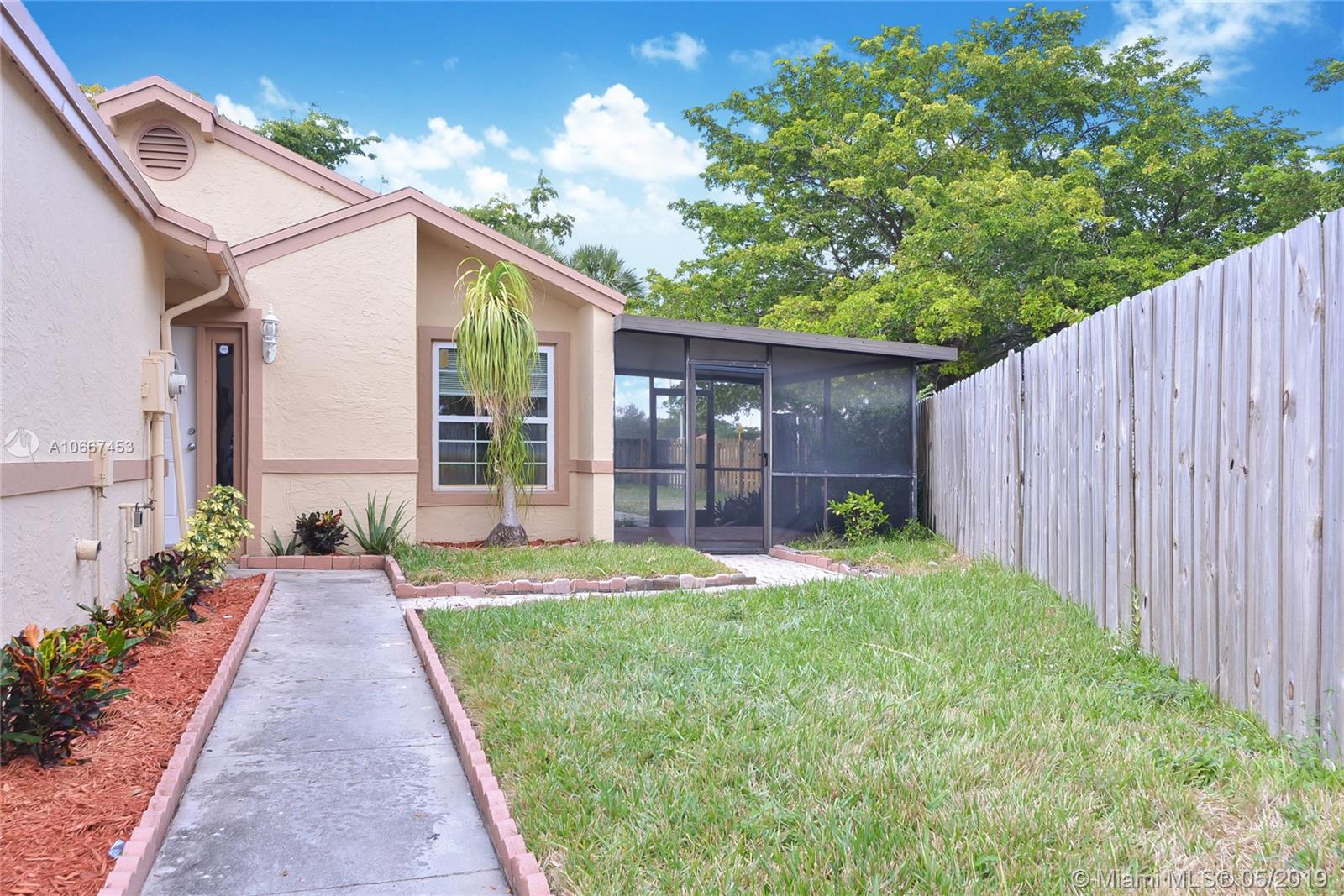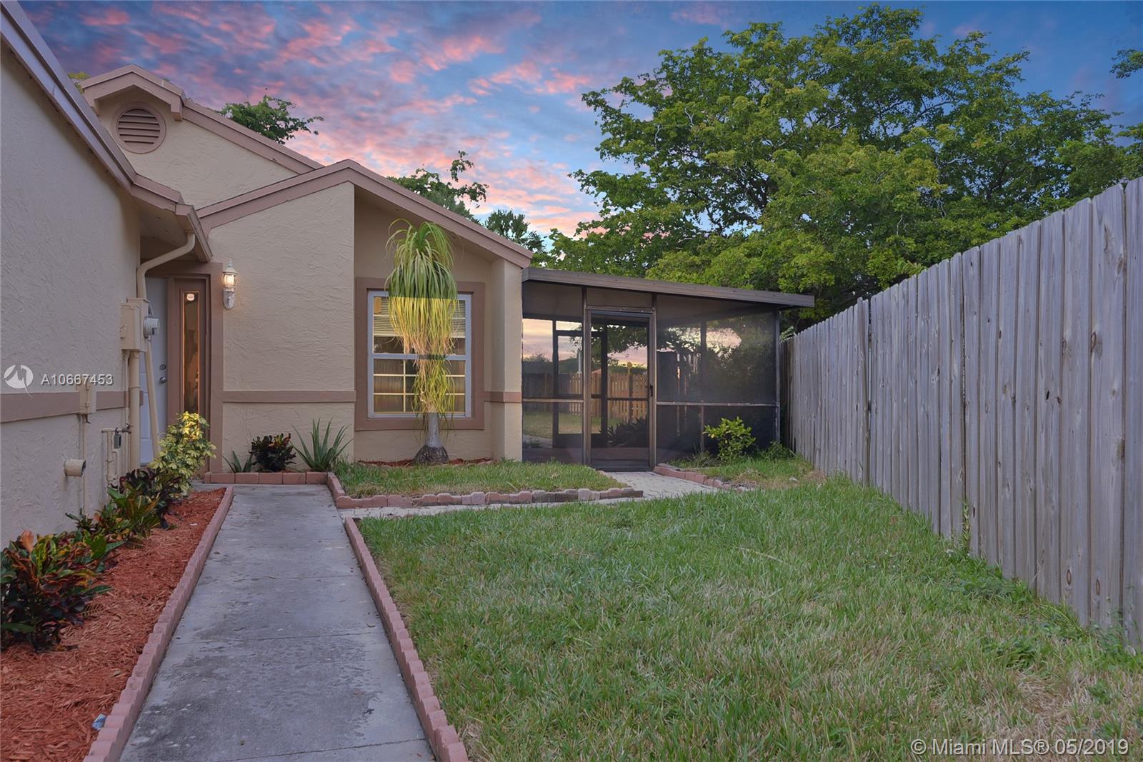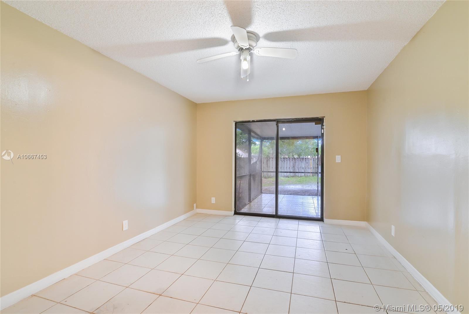 Spacious & updated 4 bedroom 2 bath home situated in a quiet neighborhood in the heart of Miramar. Property features a split floor plan, tile throughout, ample storage space and natural lighting, Laundry room with full size washer/dryer , 2 Car driveway, two screened in patios and extremely large fenced in backyard and a small bonus shed. NEW ROOF IS BEING INSTALLED BY OWNER. A truly Great family home! Easy to show.